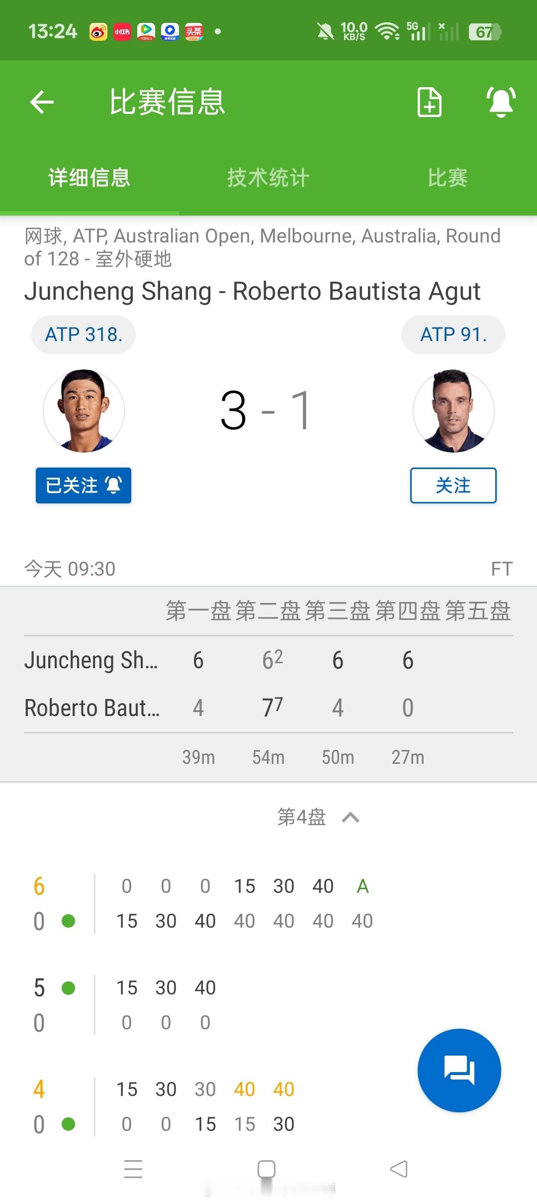 小花小草资讯 【2026澳网】男单正赛第一轮🇨🇳商竣程6-46-7(2)6-46-0击败🇪🇸球员阿古特晋级第二轮商竣程收获50分即时排名257(+54)