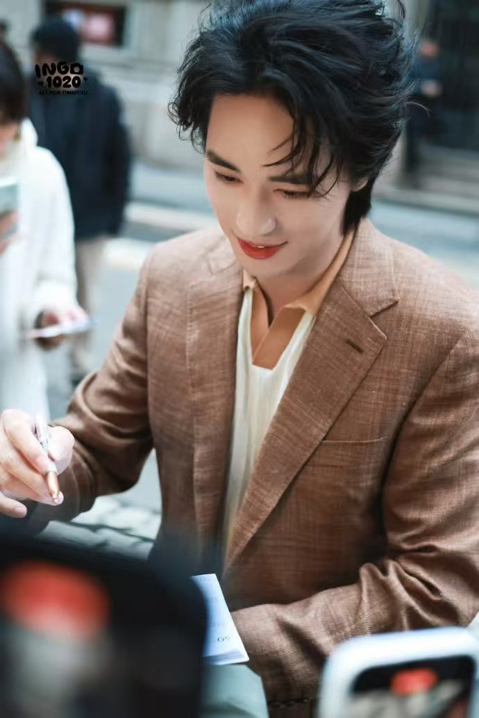 许魏洲米兰签名界鸡排哥许魏洲在米兰化身签名小能手!卡其色老钱风西装优雅,嘴里嘟