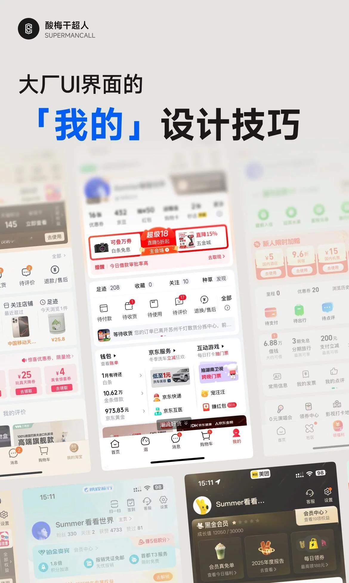 本篇继续「我的」个人主页的设计讲解,如果喜欢这个系列的同学记得多点点赞,我们就会继续更新~记住:“我的”页面不是“功能展示页”,而是“用户和产品的连接枢纽”。把用户关心的东西放在最显眼的位置,用视觉设计引导他们点击,你就能把“没人看的个人中心”变成“用户天天点的转化神器”!