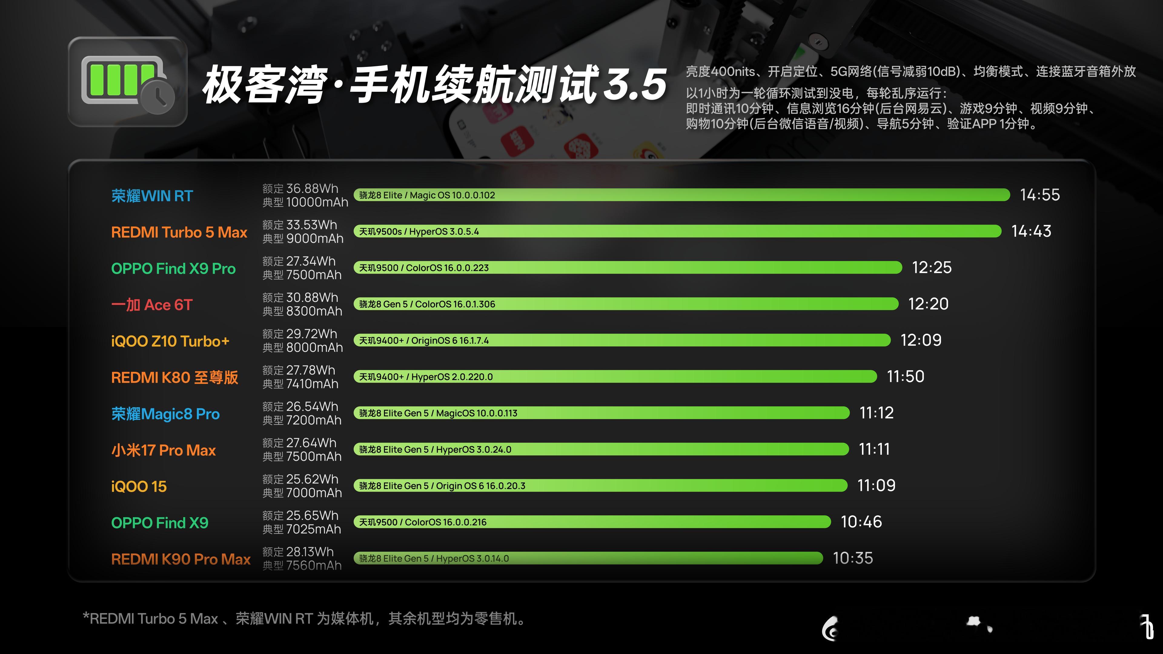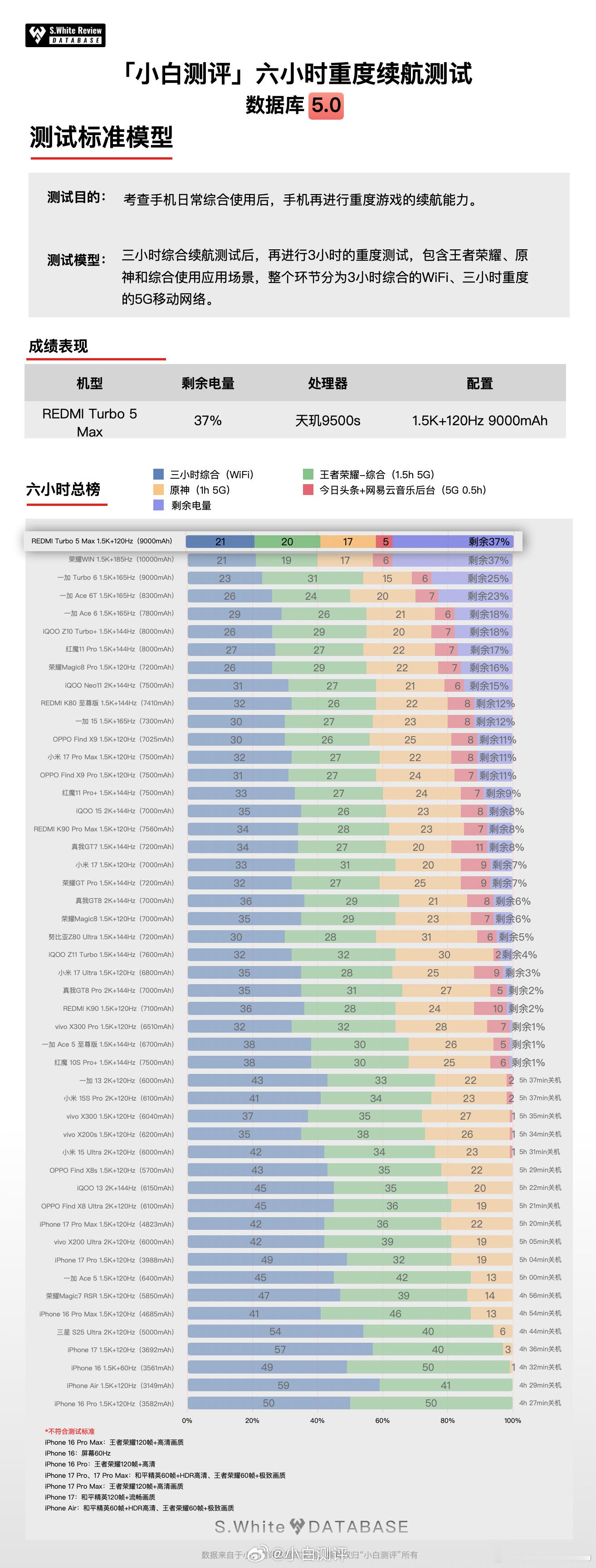 红米 Turbo 5 Max这次真的把续航做到了新高度,9000mAh的金沙江电池是小米史上最大。更厉害的是,9000mAh 电池续航成绩也依然能做到头部,这优化功力你细品。天玑9500s配9000mAh,这组合在2.5K价位段简直是降维打击。