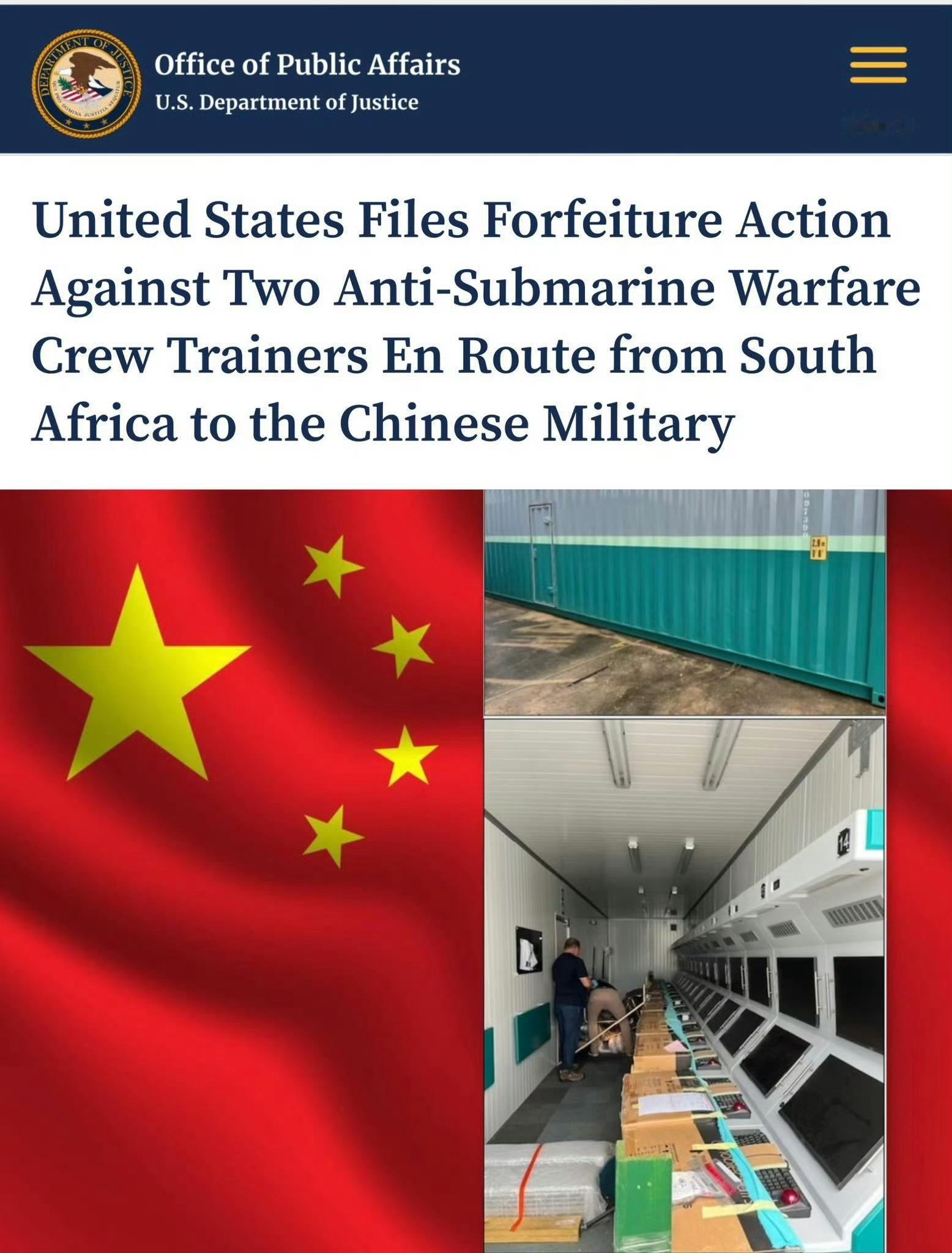 美国司法部称“扣押了南非试飞院出售给中国海军的P8反潜机模拟训练设备”根据美国司法部网站消息,这批运送的物品为南非试飞学院设计和制造的名为“任务机组训练器”(MCT)的设备及其配套软件。美司法部宣称,该设备使用了源自美国的软件和国防技术数据,“训练器是移动式教室,其设计仿照了由波音公司制造、用于反潜作战的P-8‘波塞冬’巡逻机”。美方声称,MCT项目被用来培训中国飞行员定位并跟踪在太平洋海域活动的美国潜艇,这些设备能够帮助中国军方提升追踪潜艇以及操控先进侦察飞机的能力。对于美国司法部的指控,南非试飞学院予以否认。据IOL报道,该学院在一份声明中表示,集装箱内装的是基础的移动教室单元,专为海上巡逻航空任务机组人员的管理培训而设计,不包含战术模拟器、先进系统,或任何机密、敏感及特定任务的军事训练功能。烽火问鼎计划热点观点海外新鲜事