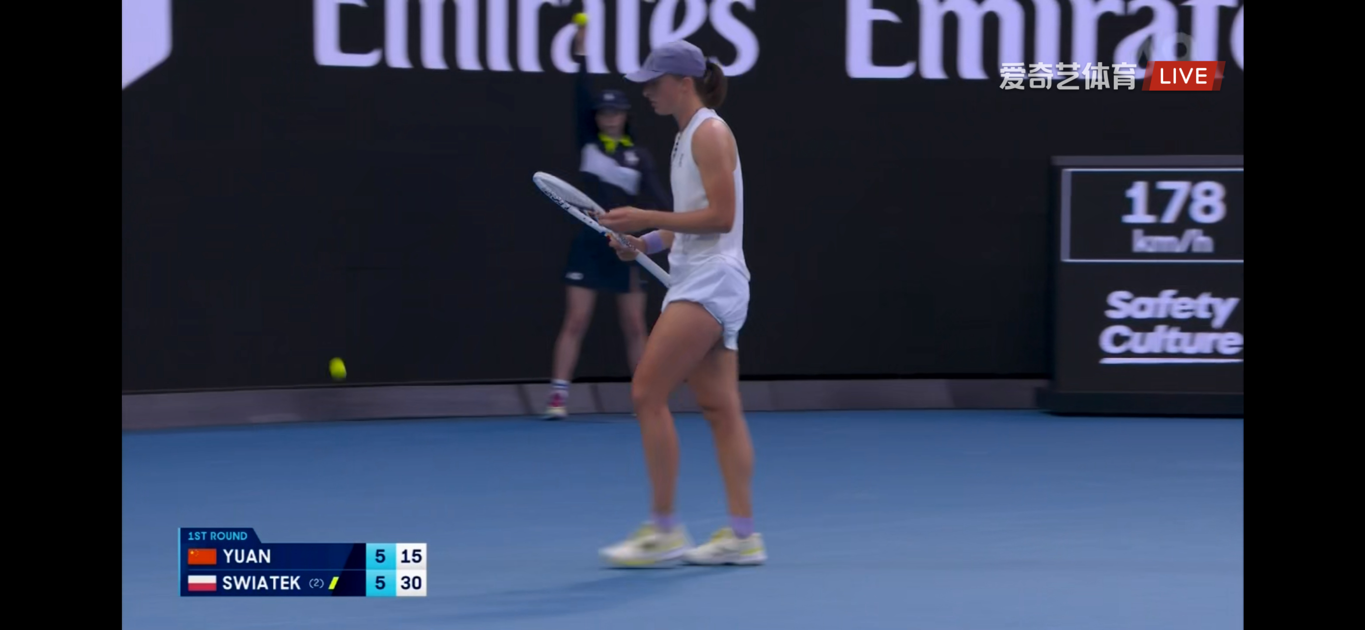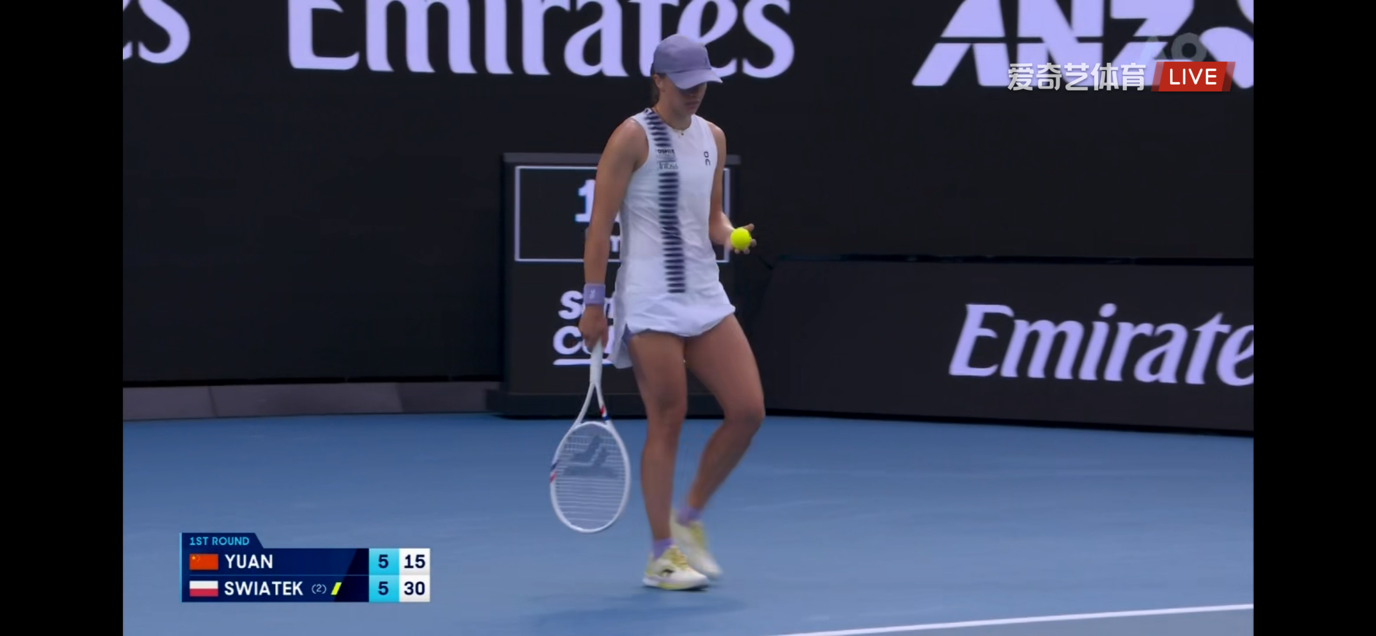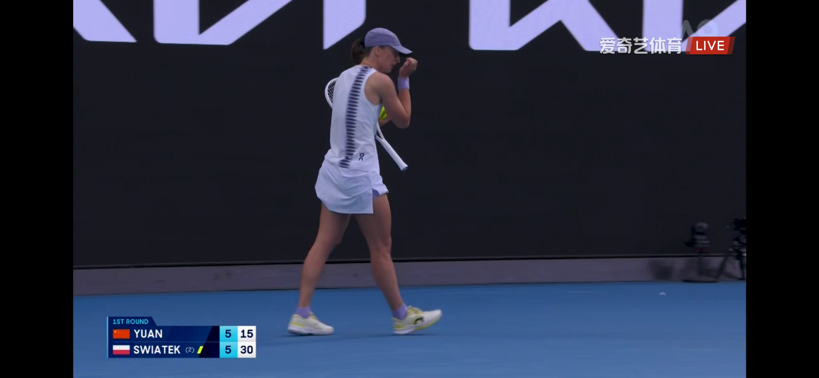 看斯维亚泰克把裙子卷成什么样了……我猜她大概不是很喜欢这身“受她的打法启发而作的设计”的网球裙。澳网2026