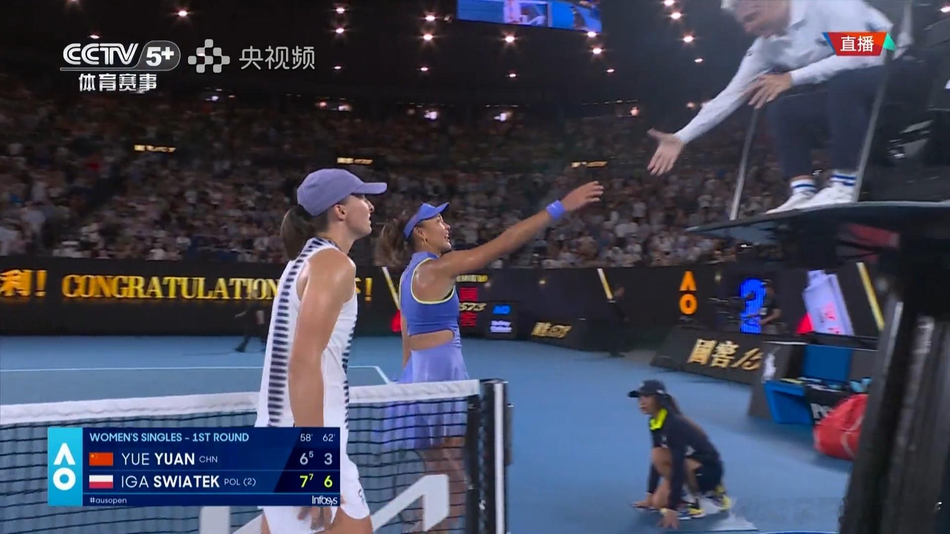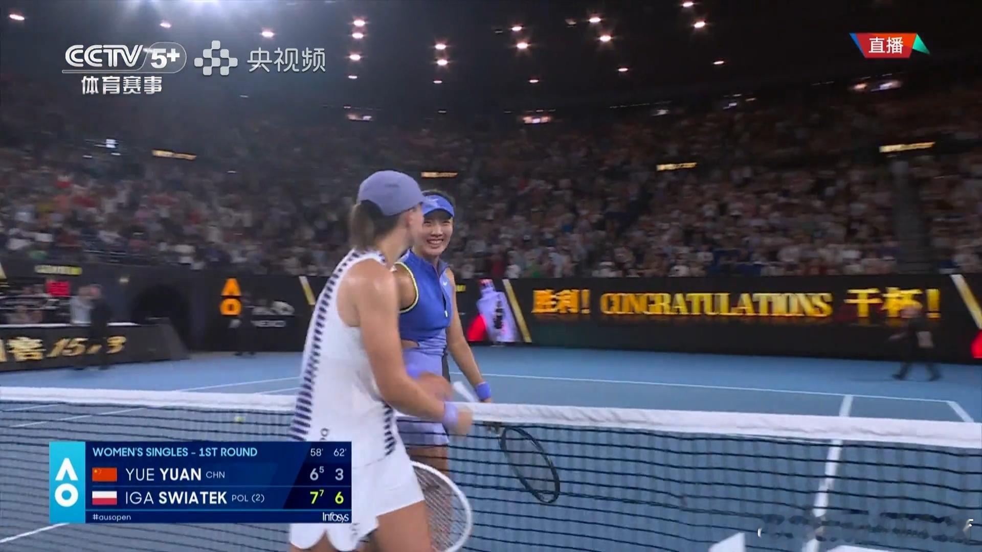 袁悦vs斯瓦泰克袁悦6比7,3比6惜败斯瓦泰克,赛后两个人握手都是笑容满面,她们都是赢家。袁悦虽然输球了,但是输的不难看,甚至说正拍上完全压制了世界第二,如果运气好一些,说不定会打到第三盘。袁悦打球更合理了,情绪也控制的很好,她还年轻,仍然有很大的提升空间,继续加油。