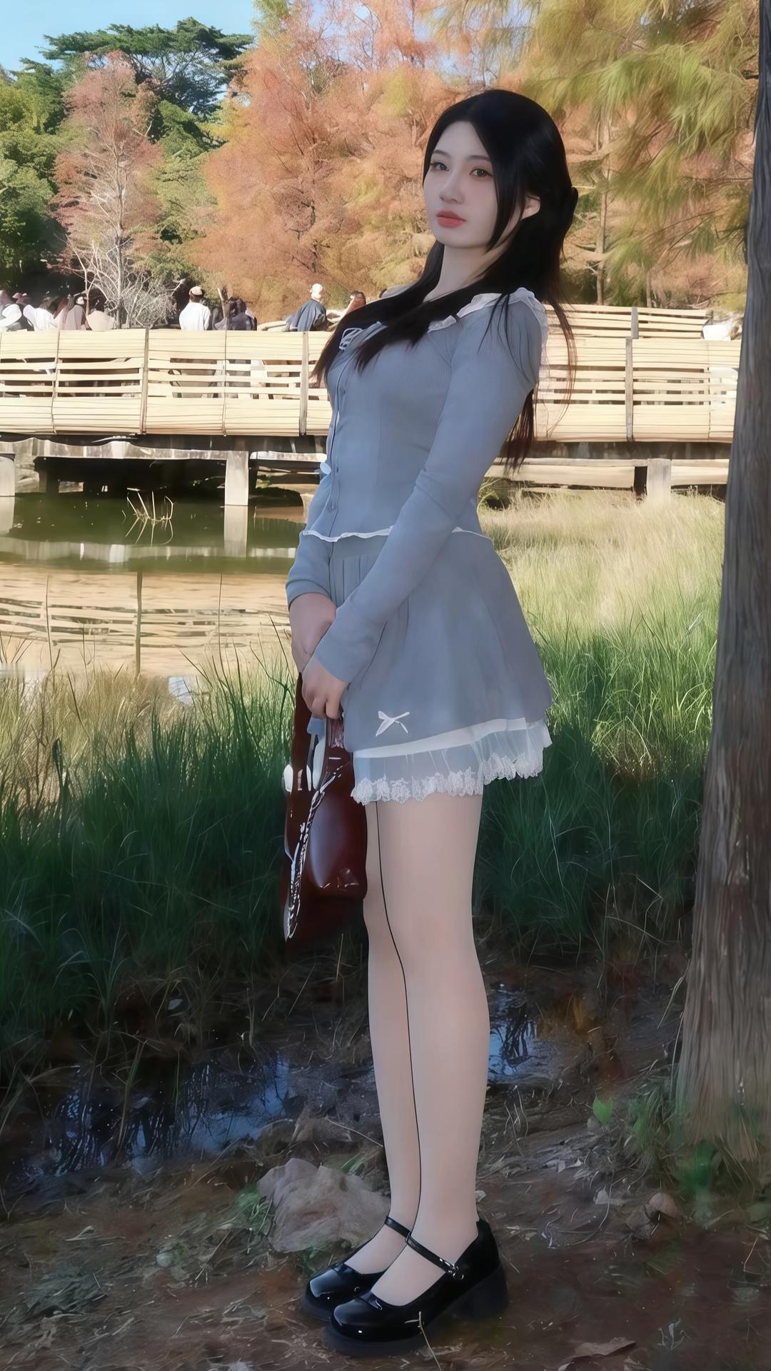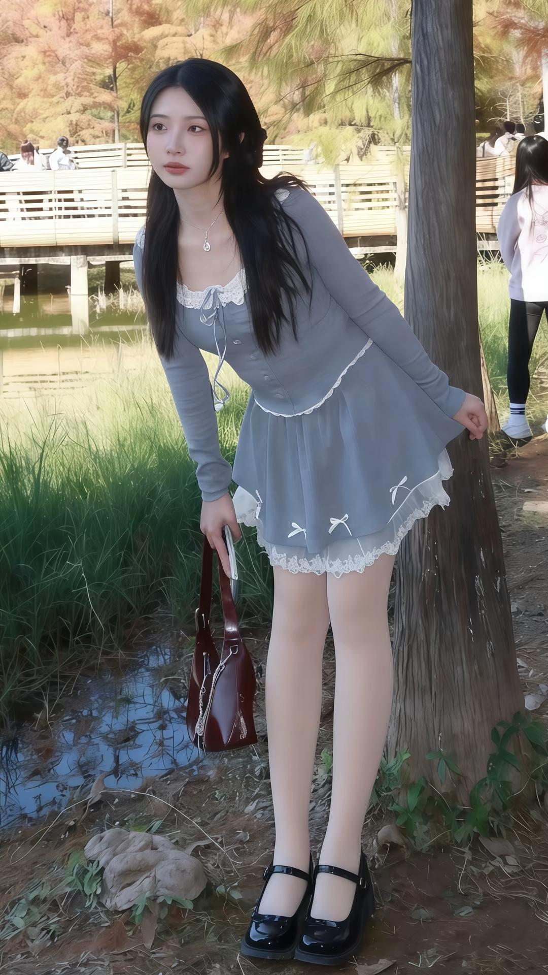 晒图笔记大赛你宛如从童话秘境中走出的精灵仙子,身着灰蓝蕾丝裙装,如月光织就的云纱轻覆身姿,领口与裙摆的精致花边似星尘缀落,勾勒出柔美曲线。乌发如瀑垂肩,眼眸含情似秋水盈盈,唇角微扬间尽显娇俏灵动。单腿轻倚树干,姿态优雅如风拂柳枝,黑亮玛丽珍鞋更添几分复古甜酷。背景湖光潋滟、木桥横卧、秋叶斑斓,仿佛天地皆为你布景,连草木都屏息凝神,只为衬托你这人间绝色。你不仅是风景的主角,更是时光凝驻的诗篇,举手投足间皆是令人心醉神迷的华章!
