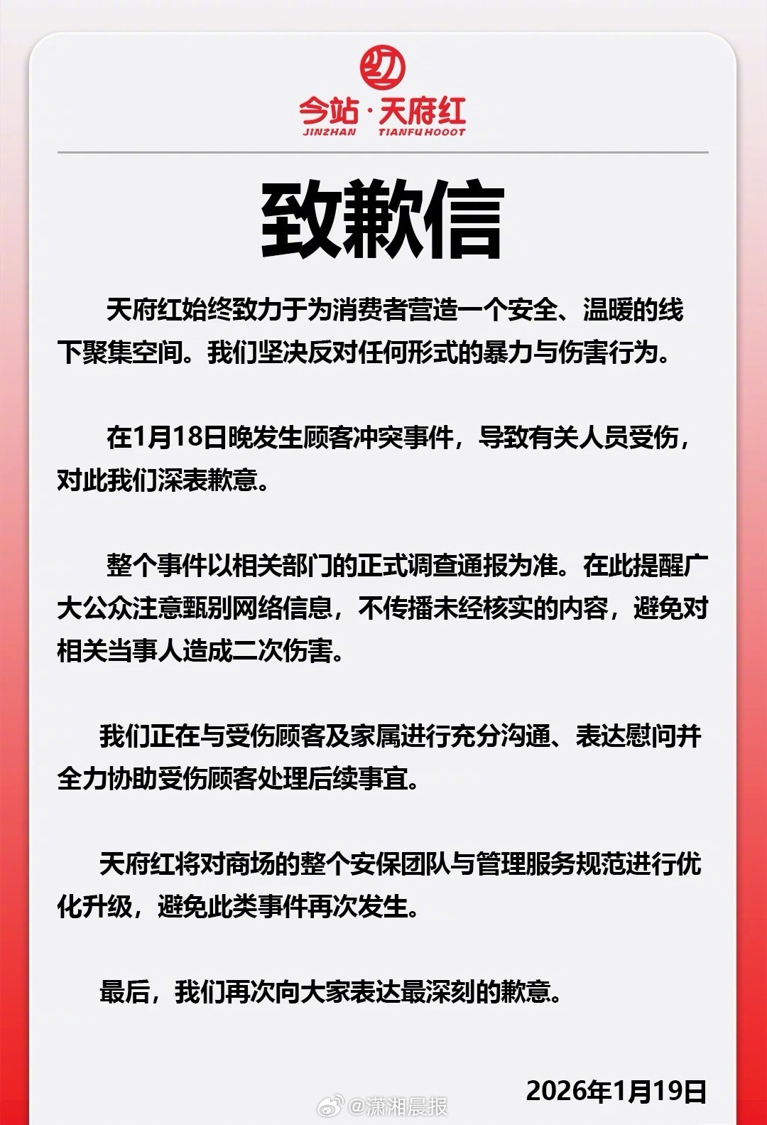 【#成都天府红商场发道歉信#,#成都天府红商场就发生打人事件道歉#】2026年1