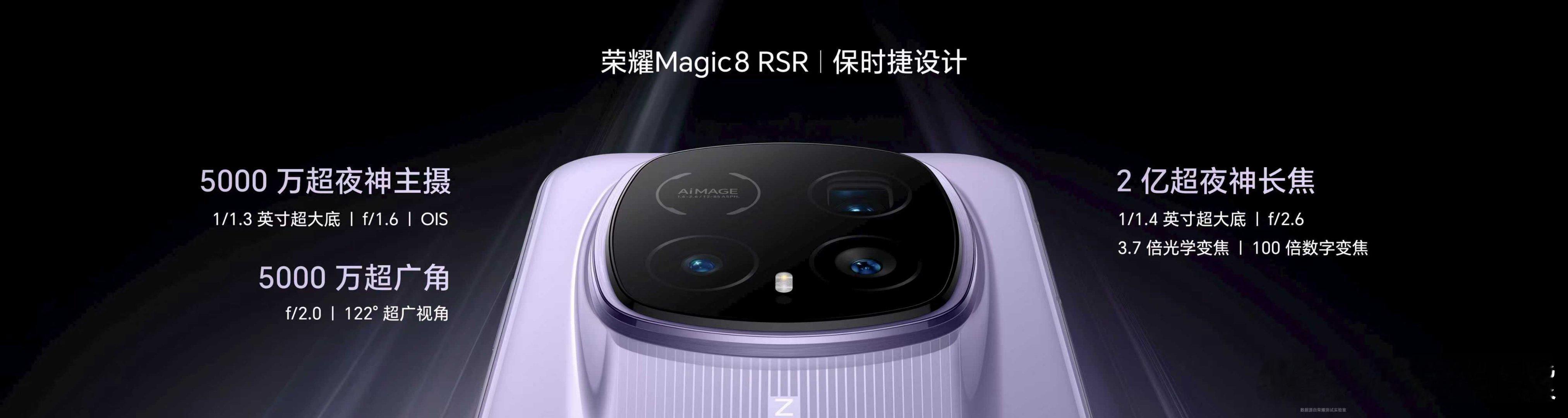 荣耀和保时捷的联名款Magic8 RSR,可不是换个壳的噱头,是真把超跑的精髓塞进手机里了!机身直接复刻保时捷“流光飞线”车顶曲线,相机模组就是超跑矩阵大灯的翻版,拿在手里辨识度直接拉满。超微晶纳米陶瓷机身还做了减重优化,手感轻盈,8.5莫氏硬度抗刮抗造,月光石浅紫和板岩灰两款配色,是斯图加特原厂大师调的,质感绝了,还有专属主题和锁屏,细节全是超跑那味儿。影像这块更是狠活,2亿像素超夜神长焦+5000万像素超夜神主摄,搭配自研AiMAGE原色引擎,拍出来的色彩特别准。选装专业影像套装,直接解锁5400mm超远摄,CIPA 6.5级防抖,手持拍3秒都不糊,不管是夜景还是远景,随手拍都是大片。性能和通信也没话说,第五代骁龙8至尊版+24GB LPDDR5X超大内存,多任务切换丝滑,用多久都不卡。双卫星通信+170小时待机,没信号的地方也能稳住连接。还有双3D生物识别、巨犀玻璃和顶级防水,日常使用稳稳当当。荣耀发布会荣耀Magic8