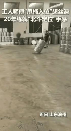 “科学都解释不清了!”1月15日,山东滨州,一男子手拿一个大铁桶,只见他轻轻一旋,铁桶划出一道完美的弧线,最后精准落位,像是装了定位一样,网友:高手在民间。   视频画面中,这名男子单手握住 36 斤重的 208 升钢桶边缘,手臂轻旋发力,铁桶立刻水平飞出,在空中划出平稳轨迹,落地时精准停在指定位置,和周围铁桶整齐排成一列。整个动作一气呵成,没有丝毫停顿。   这名男子从事铁桶搬运工作已有 20 年,每天要搬运数百个铁桶。最初他和其他工友一样,靠双手搬抬铁桶,不仅效率低,还经常累得腰酸背痛。为了减轻负担,他开始尝试用巧劲借力甩桶,从最初只能甩出几米远,到后来能控制方向避开障碍,再到如今可以精准落位排成直线,整整花了五年时间。   他练出的 “甩桶绝技”,不仅能把铁桶甩出 30 米远,还能在行进中控制铁桶转弯,避开场地里的各类障碍。视频里,他每一次甩桶的力度、角度都经过精确控制,铁桶落地时不会倾倒,也不会偏离预设位置。长期的重复作业,让他的肌肉形成了记忆,每一次发力都能和铁桶的惯性完美契合。   他所在的工厂里,工友们早已习惯了他的操作方式,甚至会主动配合他调整铁桶摆放位置。但这段视频被偶然拍下传到网上后,立刻引发了全网关注。短短一天时间,视频播放量突破 500 万,相关话题登上热搜榜前列。   有人调侃这是 “自带定位系统的铁桶”,有人惊叹 “原来力气大还能这么精准”。   还有人表示 “这才是真正的熟能生巧”。   不少从事体力劳动的网友也留言分享自己的工作技巧,引发一波 “民间高手” 的讨论热潮。   有网友留言说:“我爸干了三十年木工,闭着眼都能把钉子钉进木头里,这就是普通人的厉害之处。”   还有人表示:“看完这个视频,我再也不敢小瞧任何一份工作了。”   随着视频热度上升,当地媒体对这名男子进行了采访。据了解,他从事这一行业以来,从未发生过安全事故,日常工作中也会严格遵守操作规范,避免铁桶碰撞或失控。   他表示,自己的技巧都是在日复一日的工作中摸索出来的,没有经过专门训练,只是为了提高工作效率、减少体力消耗。当被问到是否担心被模仿时,他笑着说:“这活儿看着简单,其实很考验手腕的力度和对铁桶惯性的判断,没练个三五年根本做不到精准控制。”   这段视频的爆火,让更多人看到了普通劳动者身上的闪光点。在这个追求快速成功的时代,这名男子用 20 年的坚持告诉大家,真正的高手不需要华丽的包装,只需要在自己的岗位上日复一日地打磨技艺。   他的 “丝滑” 甩桶动作,不仅是为了提高工作效率,更是对职业的尊重和热爱。很多网友看完视频后表示,自己开始重新审视身边的劳动者,意识到每一份看似平凡的工作背后,都藏着不为人知的付出和坚持。   需要注意的是,这种甩桶技巧需要长期练习和对力度的精准把控,普通人贸然模仿容易导致铁桶失控,造成人身伤害或财产损失。专业动作请在专业人员指导下尝试,不要随意挑战高难度操作。同时,在工厂等场所作业时,必须严格遵守安全规范,避免因疏忽引发事故。   你身边有没有这样深藏不露的高手?欢迎在评论区分享你的经历。
