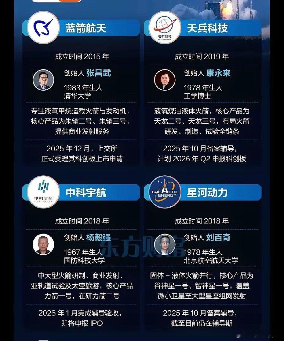 今天商业航天开始企稳,为什么商业航天前期走的那么强,都是有原因的,没记错的话2025年初航空航天方向的ETF规模好像也是很大的,目前只能静静欣赏了。最近,中科宇航完成IPO辅导验收,距离登陆资本市场再进一步。这一进展使得国内五家主营运载火箭的商业航天企业——蓝箭航天、天兵科技、中科宇航、星际荣耀和星河动力均已启动IPO进程,行业资本化浪潮正式来袭。