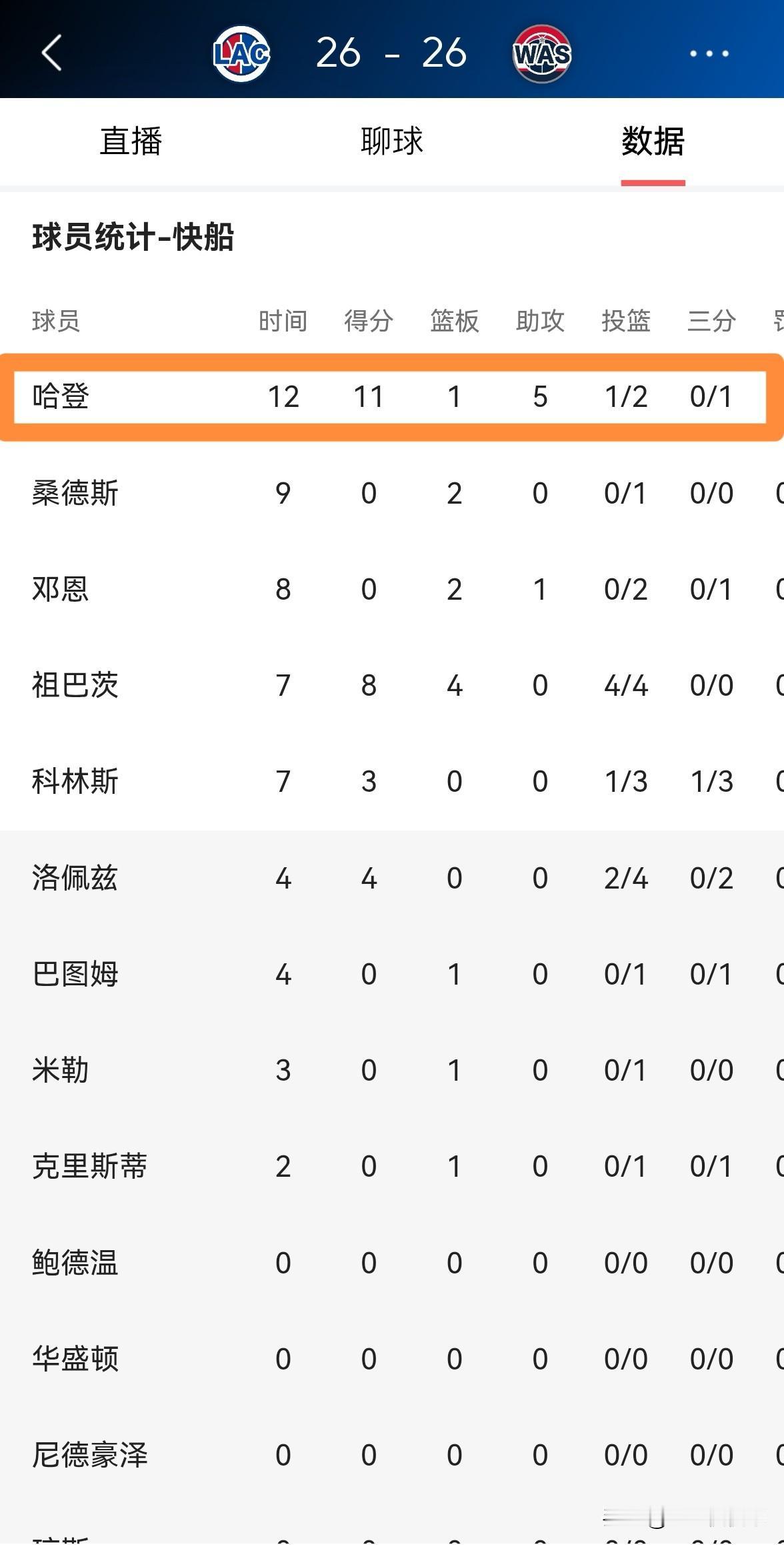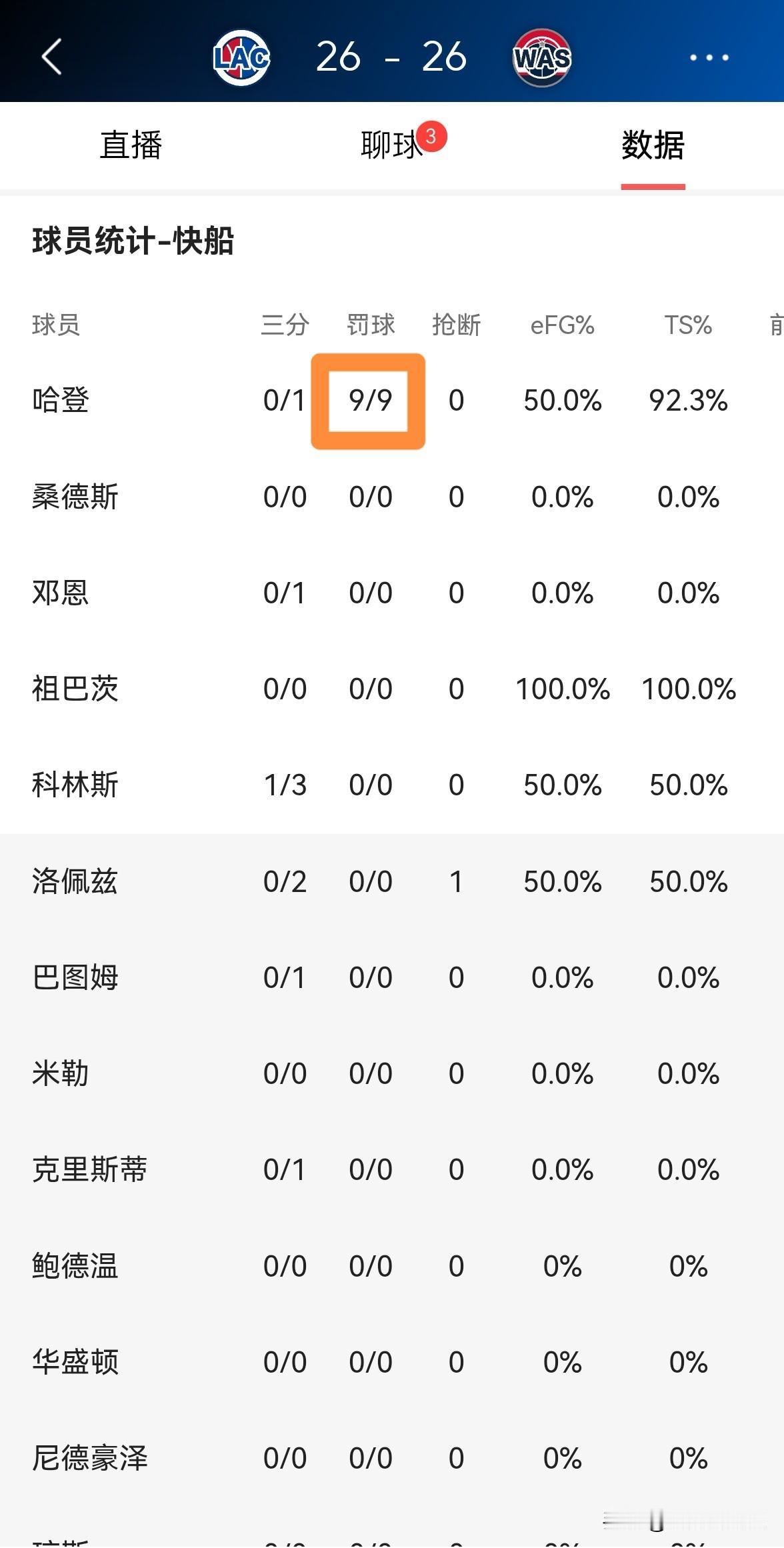 快船超级球星哈登喜欢碰瓷的老毛病又犯了!在今天快船客场挑战奇才的比赛中,目前双方的首节比赛已经结束,两队战成了26平。值得注意的是,在第一节比赛中,哈登疯狂的获得了9次罚球,他在首发出战的12分钟里,投篮2中1,其中三分球1中0、罚球9中9砍下11分,还有1篮板5助攻。 当我看了哈登在第一节比赛中的表现后,我对哈登碰瓷的能力真是佩服的五体投地。