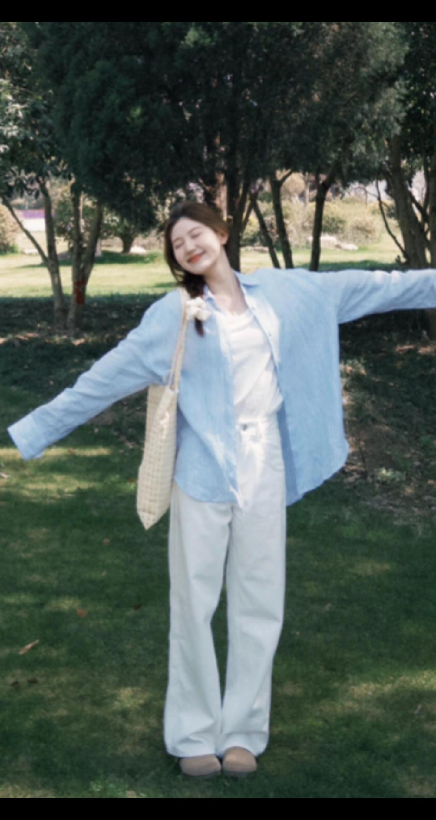 光之影&AI都市街头风,白衬衫+牛仔裤,清新自然,轻松出行!白色衬衫穿搭简