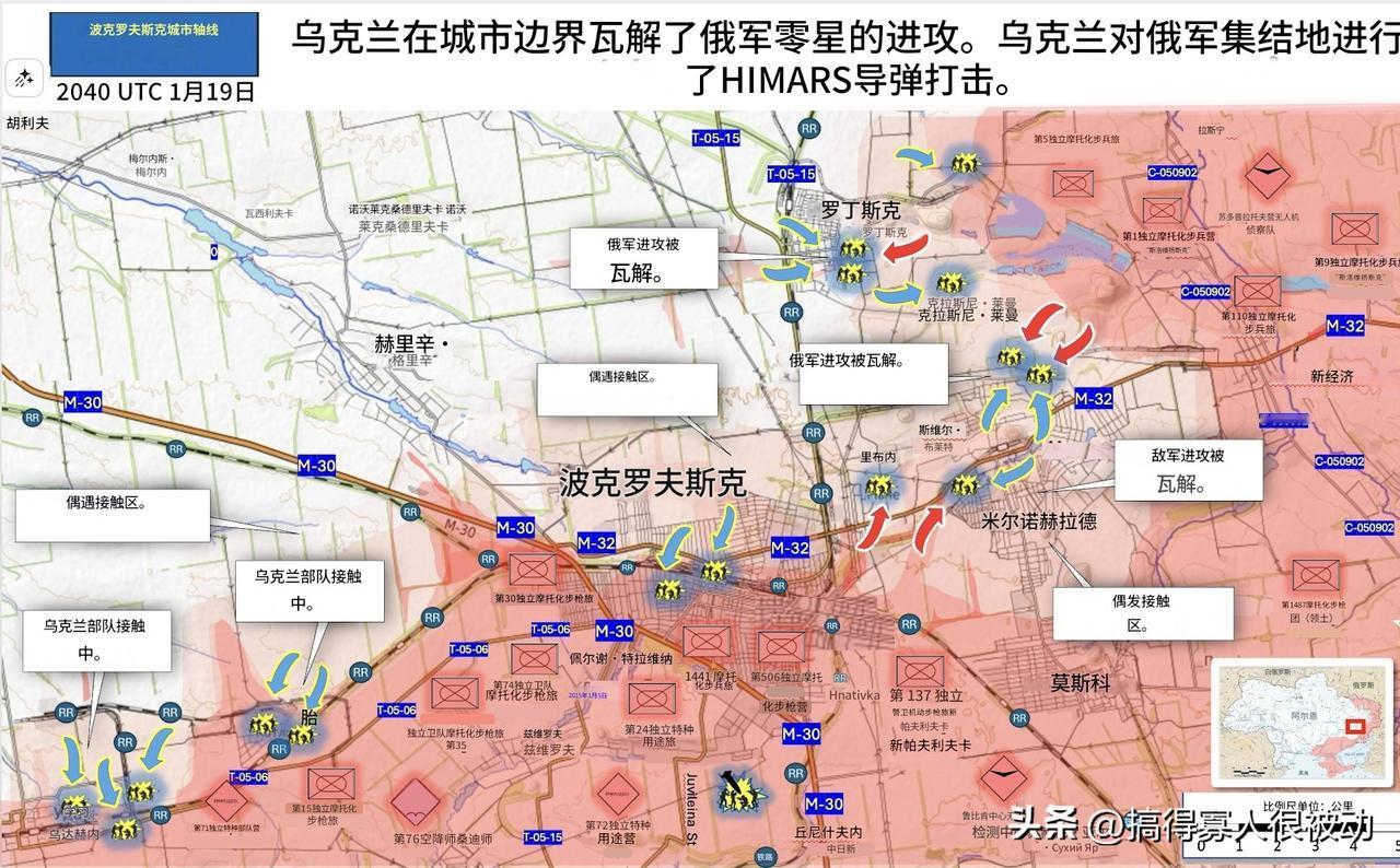 波克罗夫斯克战线目前处于停滞状态,俄军尽管使出浑身解数,依然无法前进,部分交战区域的俄乌伤亡比例达到25:1。据乌克兰第7军的消息,俄军王牌第74空降师由于在该方向损失惨重,不得不调动预备队。在过去一周,有370名俄军在波克罗夫斯克被“去军事化”。 自从占领阿夫迪夫卡以来,俄军花了20个月,以伤亡16W的代价,前进了约40公里。