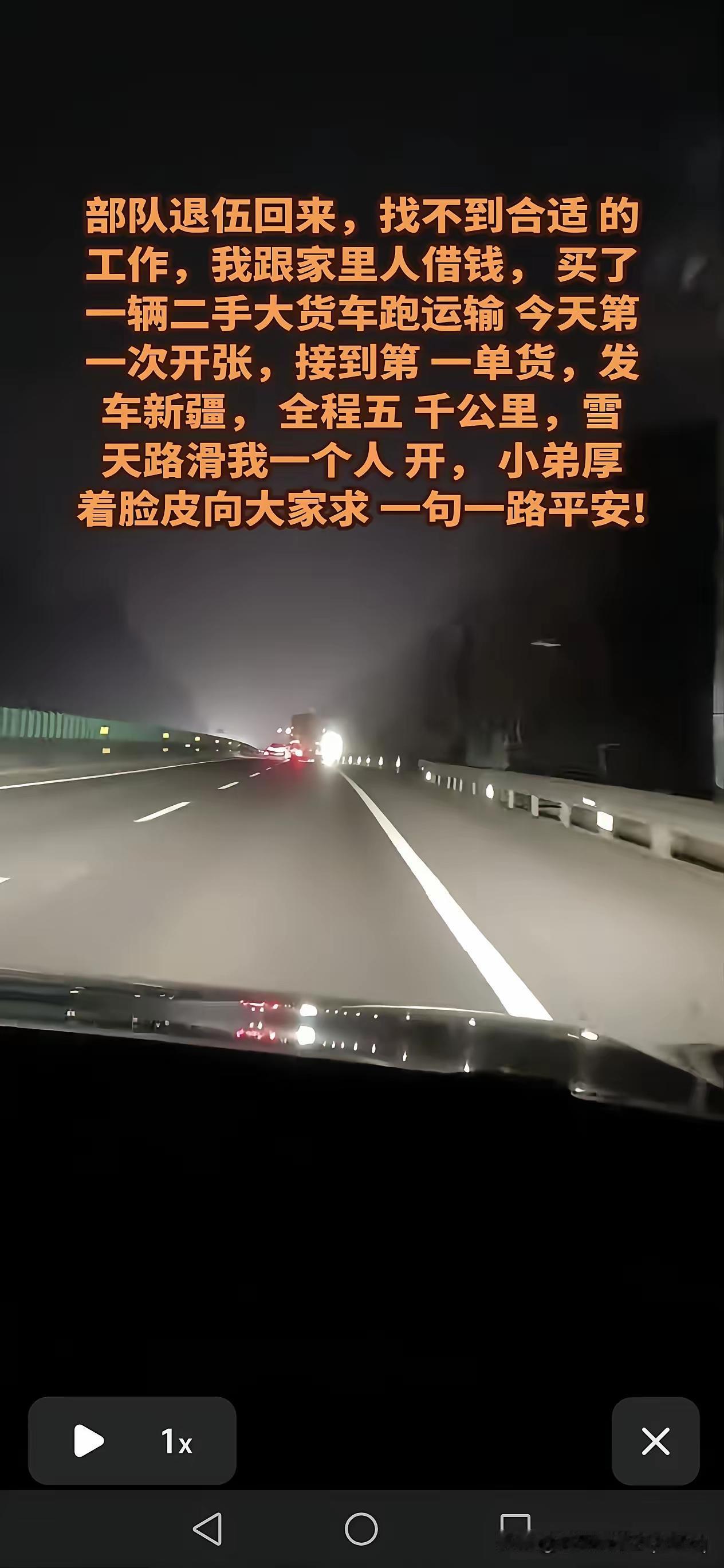 一位退伍的老兵,为了开始新的生活,凑钱买了辆二手货车。头一回接活儿,就得跑5000多公里去新疆。冰天雪地的天气里,他自己一个人就出发了,还特意在网上发帖,就为求一句“一路平安”。 这事儿让我想起去年在318国道上碰到的一位开卡车的师傅。他开了整整二十年车,说自己最怵的就是冬天跑长途。“雪天路滑的,稍微打个盹儿就可能出危险。”他车里常年都备着红牛和/or风油精,困了就往太阳穴上抹一点提神。 老兵这一路真不容易啊!退伍后找工作不好找,他咬着牙买了辆货车,想从头开始干这行。5000多公里,按每公里2块钱来算,这趟活儿差不多能挣一万块。但去掉油钱、过路费、吃饭住宿这些开销,最后能落手里的也就三四千块。 雪天开车尤其得注意安全。大伙儿要是跑长途,建议多带个保温壶装着热水,要是困了就停下车歇会儿,别硬扛着。后备箱里备点干粮和防滑链,这样才更有保障。 大伙儿觉得退伍军人转行跑运输这事儿怎么样?现在这行还好做不?退伍军人创业故事 长途运输那些事 你身边有这样的老兵吗?评论区聊聊~ -search.byteimg.com/img/tos-cn-i-qvj2lq49k0/3ab44043e3f64a9da7b41191397e4eb3~480x480.jpeg买二手卡车 二手卡车货车 奇台二手货车 二手货车利润 新颖二手货车 喀什二手卡车 阿勒泰二手货车