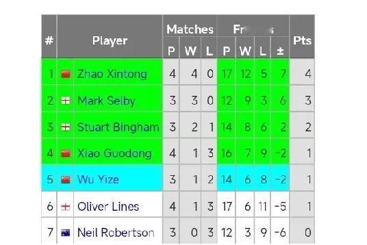 赵心童打出世锦赛夺冠表现! 零封尼尔·罗伯逊,3杆破百7杆50+! 1月20日凌晨,2026斯诺克冠军联赛第五小组结束了第一天的12场比赛。 世界冠军赵心童发挥出色,4战4胜: 3-2击败吴宜泽 3-2战胜宾汉姆 3-1战胜肖国栋 3-0零封尼尔·罗伯逊 四场比赛,共计打出3杆单杆破百、7杆50+!进攻火力堪称恐怖! 目前,赵心童排名小组第1、马克塞尔比3战3胜排名第2,肖国栋1胜3负、吴宜泽1胜2负,排名小组第4、第5位。 今天比赛继续,将决出小组冠军。