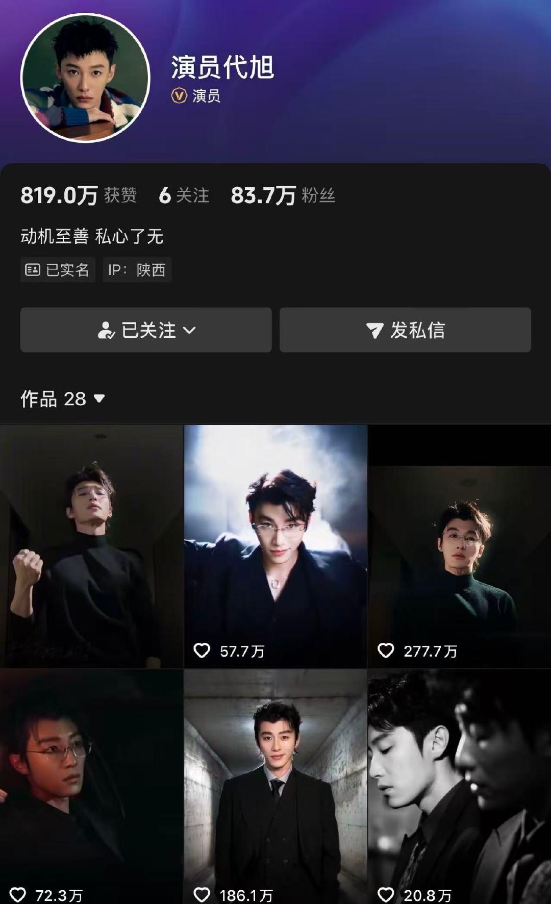 代旭有效剧播代旭的涨粉速度 代旭《轧戏》有效剧播,开播前粉丝不到10w,现在已经涨粉到83w
