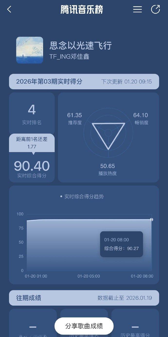邓佳鑫思念以光速飞行战报邓佳鑫新歌热度 邓佳鑫新歌热度,邓佳鑫思念以光速飞行战报