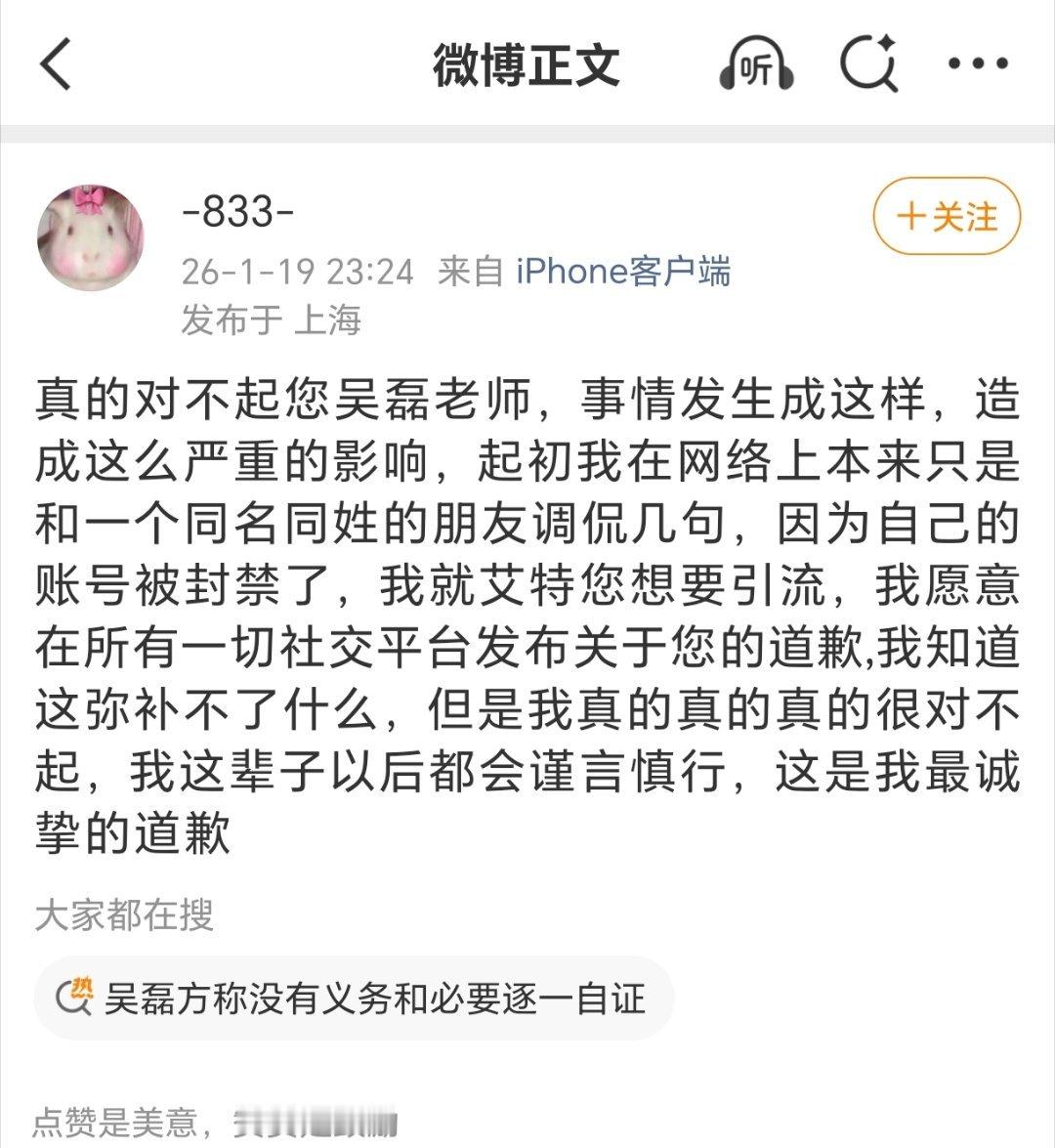 白珊珊向吴磊道歉一场闹剧引发微博几十个热搜