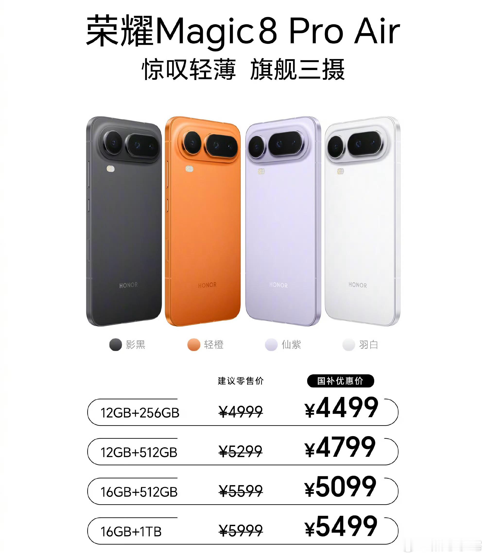 最近荣耀最有看头的产品就是昨天发布的荣耀Magic8ProAir和荣耀Mag