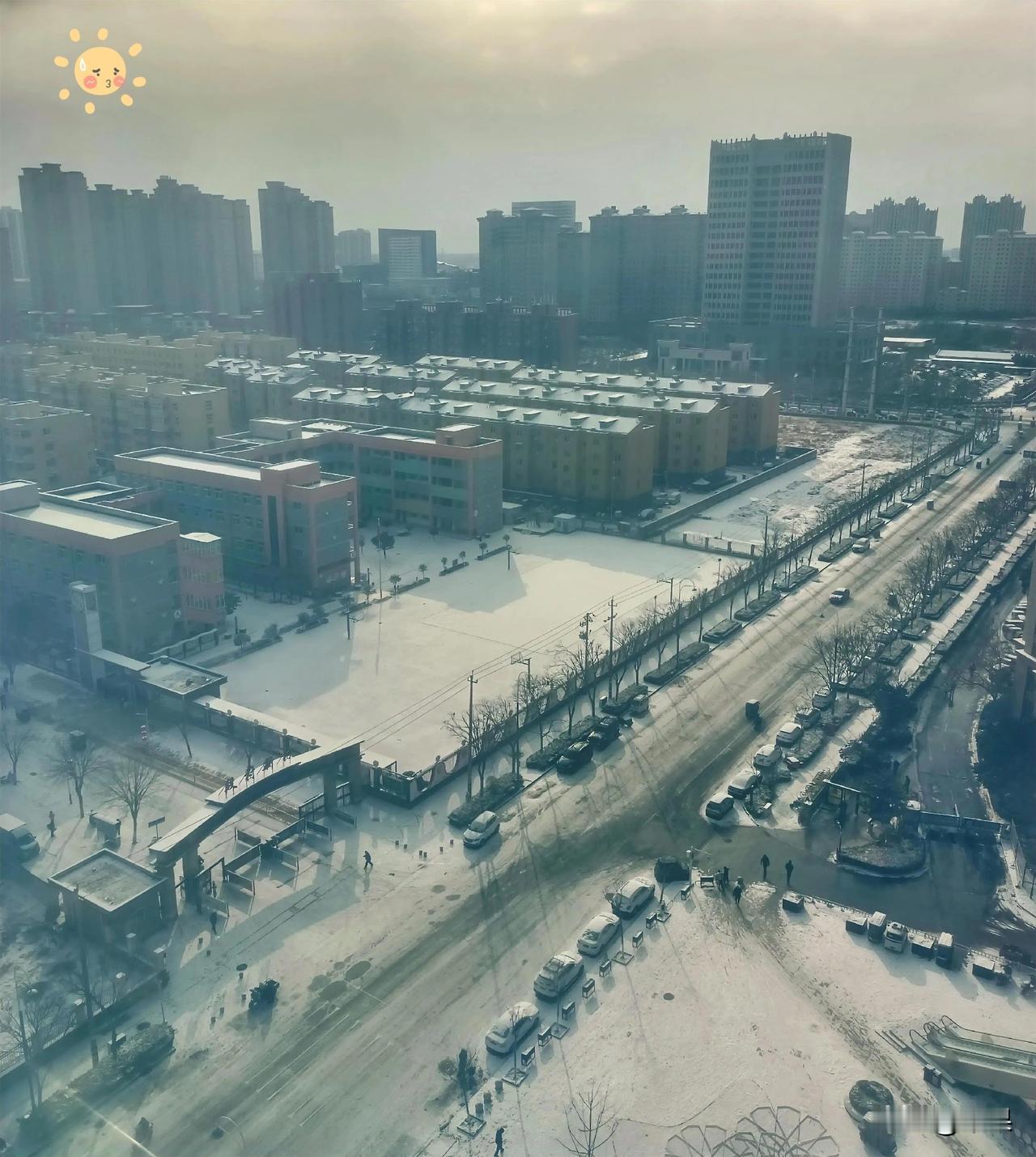 雪后天晴的上午,站在窗边随手拍下这一幕。 城市裹着层薄雪,灰蒙蒙的空气里透着亮,马路上的车辙印和路边的脚印,路滑小心慢行。 远处的楼房安安静静,近处的操场像铺了张白毯子,看着就暖和。这样的日子,没有喧嚣,只有踏实的烟火气~冰雪过后的雪景 街上的雪景