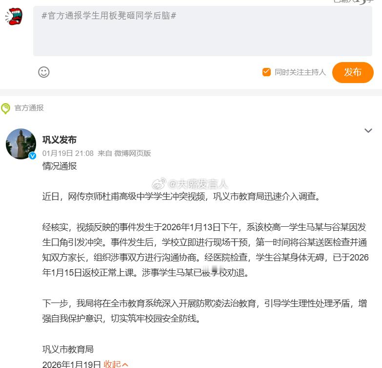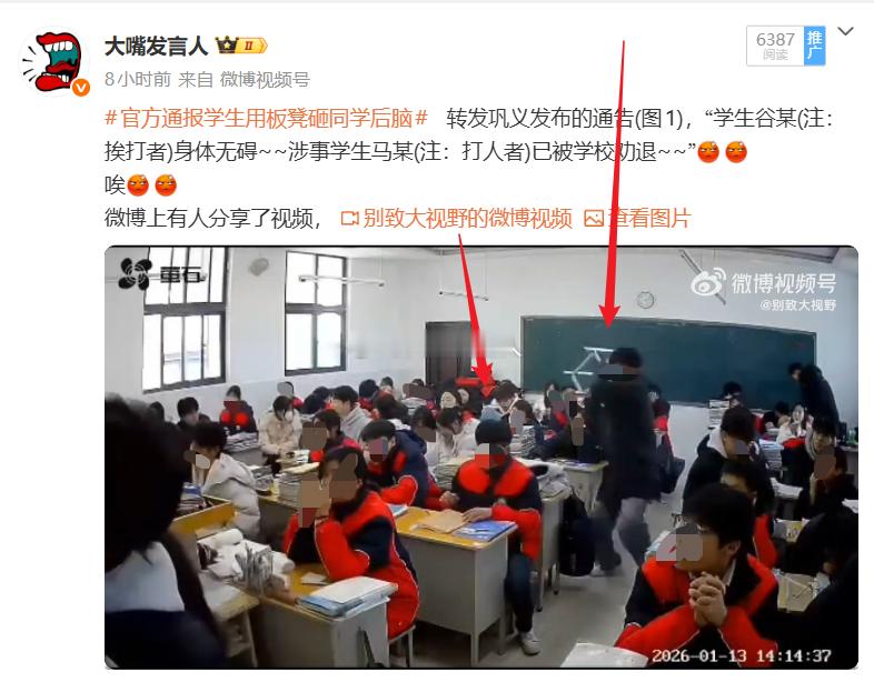 昨天看到的两条涉及高中学生高一年级学生的新闻,官方通报学生用板凳砸同学后脑,这是高一男生;高一女生带手机被停课1个月。高一男生举着凳子棱角(图1),直接砸向同班男生同学的后脑,“涉事学生马某已被学校劝退”;高一女生多次违反校规,带手机到学校,终被查出,停课一个月,学生家长这时候知道着急了教育局回应女生带手机被停课1个月 ,热点观点