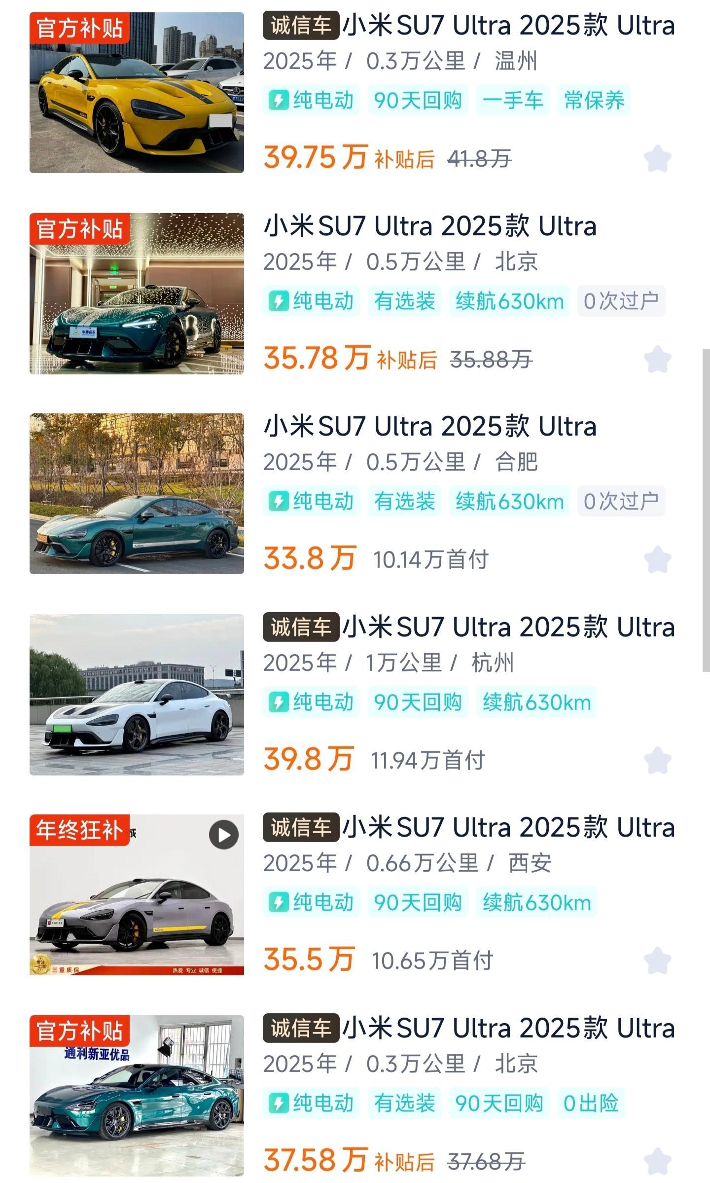 一个非常有趣的现象:现在小米SU7 Ultra的二手价格,和极氪001 FR几乎一致