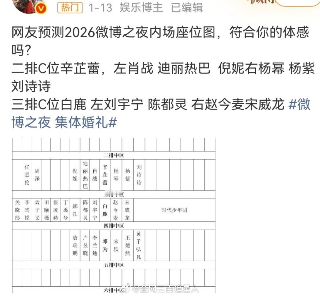 有时候真怀疑罗伯特成精了,网传的座位图其实是早些时候网友预测的内场座位微博之夜