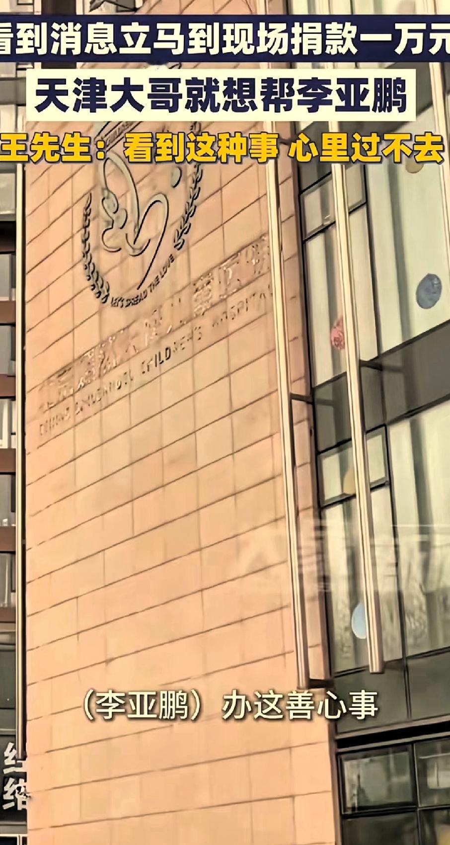 忽然泪目了。其实社会上善良有爱心的人太多了。为了孩子们,拼了。孩子们好了,我们的社会还能不好吗! 根据大象新闻1月19日报道, 北京,一男子从天津急匆匆赶往嫣然医院,本以为他是来打听看病的,结果男子二话没说当场捐了1万元!男子还说:“李亚鹏办这善心事,遇上这坎儿,咱不帮一把,我心里过不去。”看着大哥衣着打扮也不像有钱人,但是大哥的善心最美! 这就是普通老百姓最朴素的做法,大家用最暖心的方法支持亚鹏,愿嫣然天使儿童医院能坚定地走下去,愿亚鹏从此的公益之路不那么艰难,最后还得提醒亚鹏要好好注意身体,这些年你受委屈了,也太累了,让自己喘息一下吧!为善良的大哥和李亚鹏点赞👍!