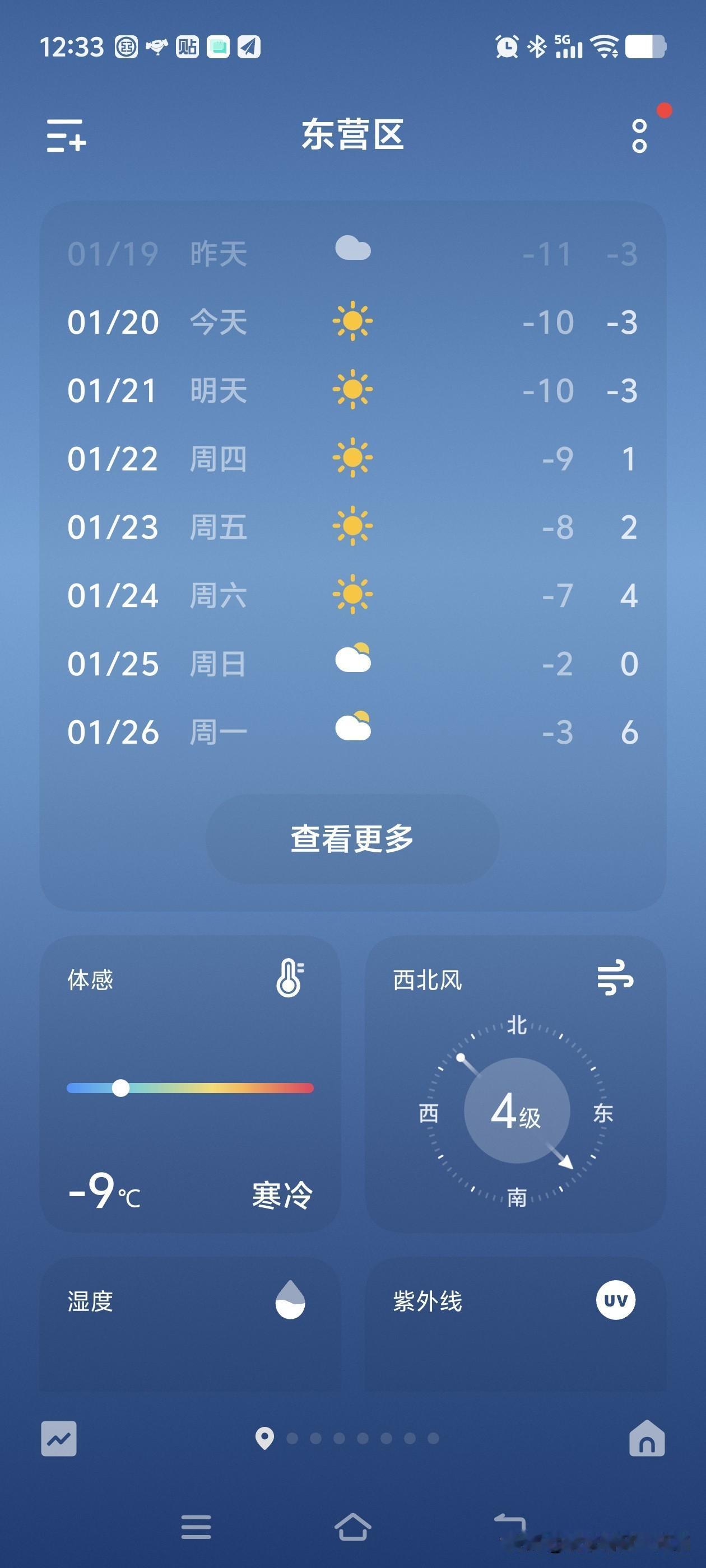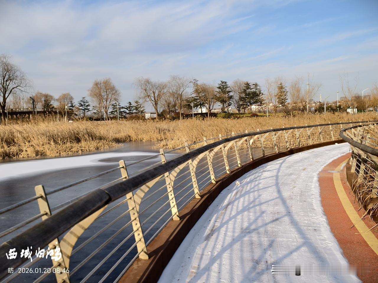 雪后的东营,天空湛蓝,空气清新,但气温降到零下10度左右,看着阳光明媚,实则冷的要命。 看天气预报,从22日开始气温就会回升,持续一周的降温结束。 这两天虽然冷,但雪后的景致却很美,一切都很安静,像被冻住了一般。