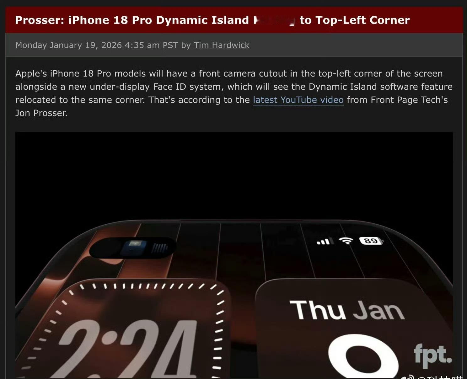 iPhone18Pro或采用单挖孔前摄 苹果终与灵动岛作别,iPhone18 Pro敲定单挖孔前摄方案,核心是屏下Face ID技术落地,屏占比突破96%向真全面屏靠拢。看似外观革新,实则是技术妥协后的平衡,舍弃居中对称美学换屏占比提升,虽摆脱形态束缚,却也丢掉了苹果多年的设计辨识度,高端旗舰渐趋同质化。苹果灵动岛