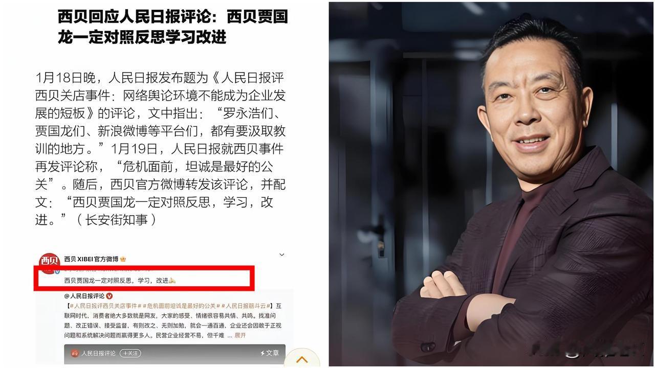 人民日报两次发声评“西贝事件” 能为西贝挽大厦之将倾起作用吗? 网友和消费者们,还会重新选择相信西贝,站队西贝,力挺西贝吗? 在官媒的发声下,贾国龙数次表示会坦诚接受批评,并从中去反思、学习、改进。 然而,尽管如此,西贝在这一次的风波中是否会吸取经验教训?能否切实去努力做到从内求,从内改善自身?能否为消费者提供更好更优质的产品和服务? 还有待后续观察... 你觉得西贝能力挽狂澜,改变局面吗? 📨评论区留下您的宝贵见解!