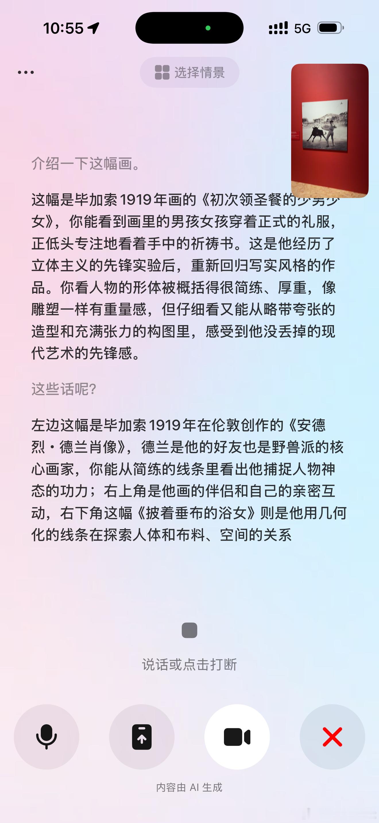 这是我一边逛展览一边和豆包视频通话的记录。体验还是很丝滑的,它能理解我进了哪个展厅,其实也意味着ai和真实世界有了交互。当然这个体验更好的肯定还是ai眼镜。