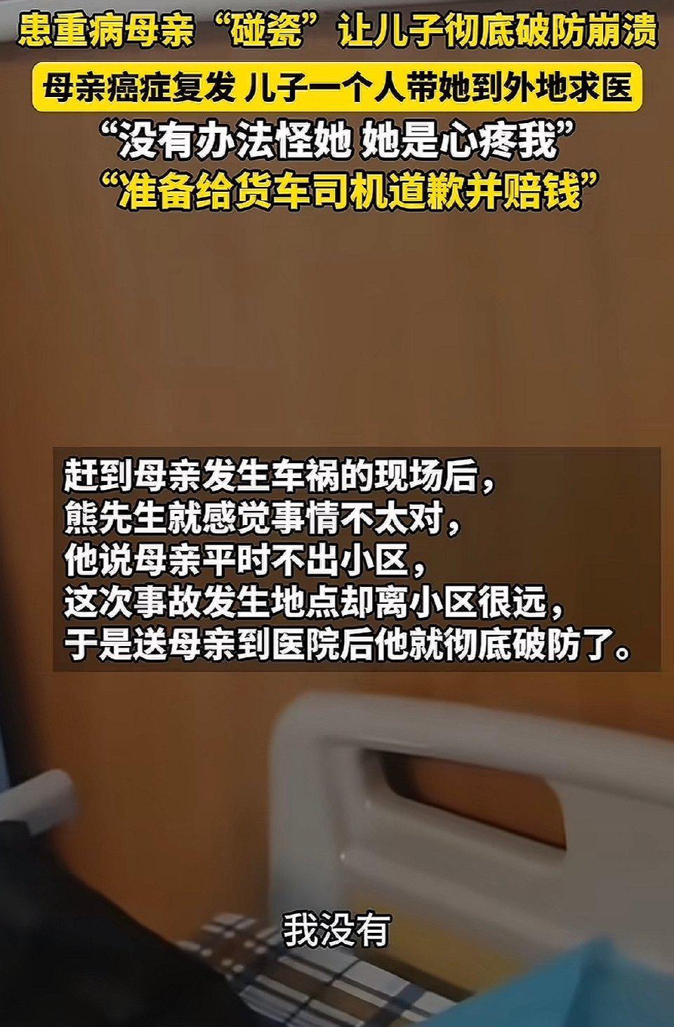 武汉一条马路边,64岁的熊妈妈揣着病历本溜达到车流里,瞅准一辆慢行的货车,身子一