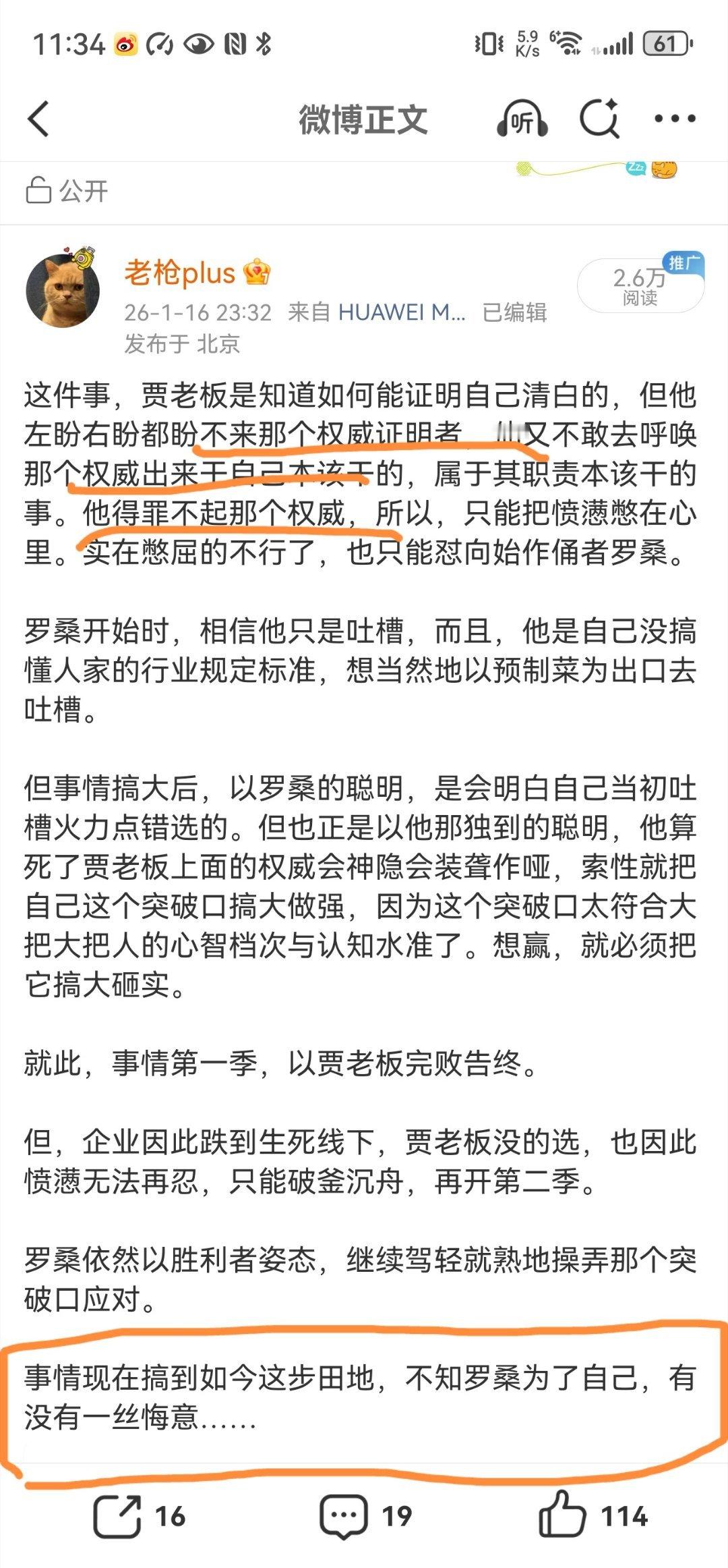 来,明说或腹诽我在罗桑与贾西贝这事儿上站的位置有问题的,我和你们浅浅说一下我的站位:1、基本上你们不是罗桑粉也是罗桑的支持者,至少在这个事情上是。那就先说我对你们罗桑是什么基调的站位。图二看第一个红线圈起来的地方,当时是这次闹腾起来当日下午5点多,大家等着看晚上10点的戏,我说的是罗桑该回头了,这次怎么还不知道该回头了?这是我在这次这个事情,说的第一次话。四个半小时后,罗桑就被来去之间这只白手套给薨了。然后,图三下面的红线圈起来部分,是当晚罗桑被薨后,我说,闹到这步田地,他是否脑袋明白点了?就是只为了他自己,他是否该有一点悔意了?对罗桑,我和你们的区别是,你们就是鼓噪着为他叫好呐喊助威,客观上,你们是把他送上断头台的强大推动力。而我,是告诉他,这么下去的话,你就该不死也残了。在对待罗桑的站位上,你们还好意思跟我啥……2、对整个这个事情的站位,我真没兴趣去多分辨他俩的是是非非,在我看那是常识,常识的事情我懒得去多说。我一直看着的是大象的表现。而你们,或者根本看不见房间里的大象,或者假装房间里没有大象,就只看着两只猫狗在打架,或假装只有两只猫狗在打架,然后指指点点它俩谁更聪明谁更蠢,谁这一口咬的有理谁那一爪子挠的无理。去看图里其它红圈红线处。真是费劲,以后真不能掺和国内任何破热闹了,咱们还是专注于调侃美日欧吧。 玛德,不行,最后,我得再说的难听但却更真实点,真实到你们里许多人可能会为自己叫屈:你们实质上或多或少都带有鲁迅先生痛心疾首地痛斥过的那些帮闲与看客的味道。