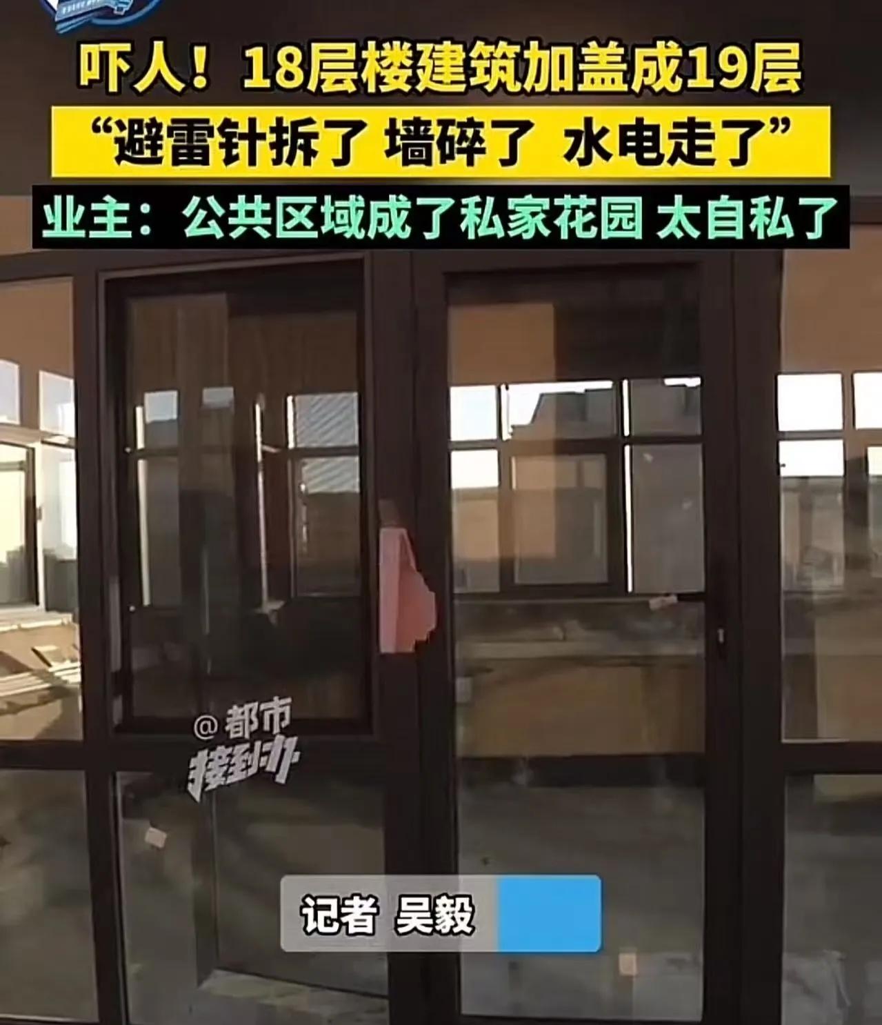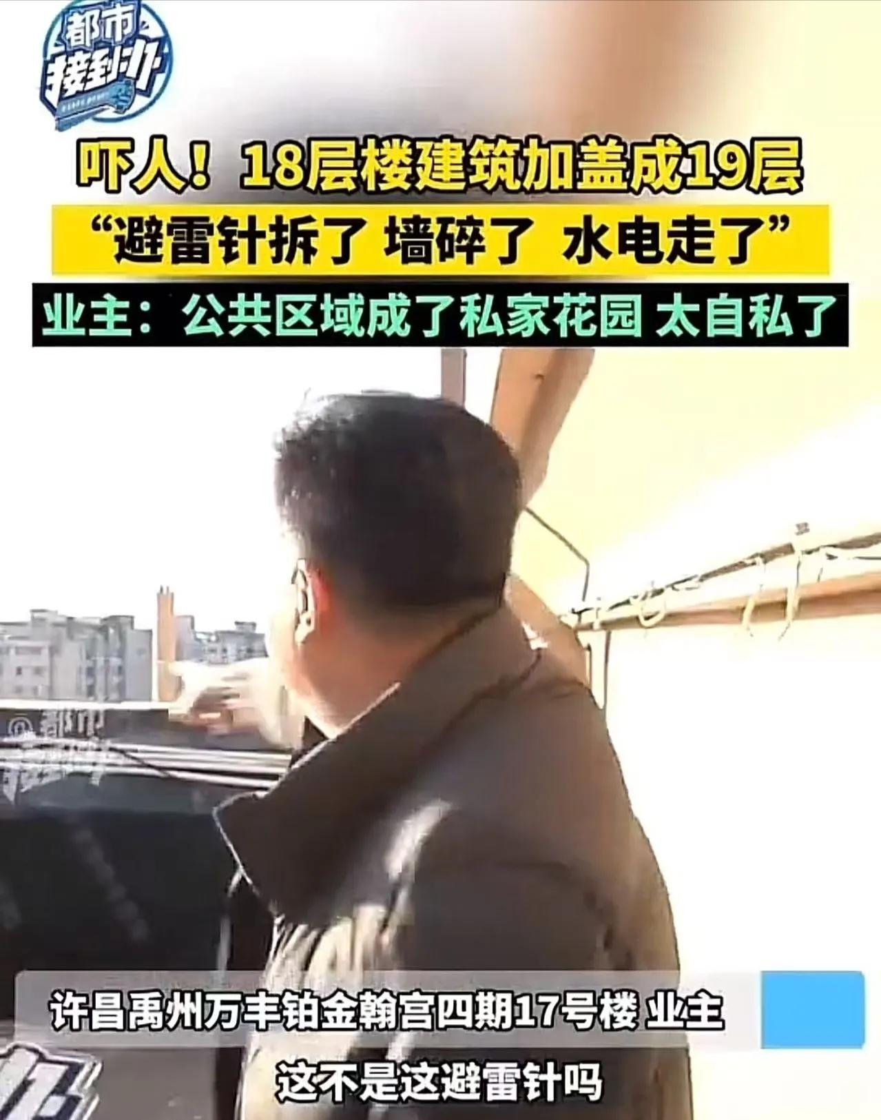 云南某老旧小区的居民最近彻底睡不着觉了,原因是他们住的18层高楼,硬生生被顶楼业主“拔高”成了19层! 这栋17号楼里,顶楼业主的操作简直刷新三观——趁着大家不注意,悄悄霸占了整栋楼的公共屋顶,偷偷加盖起一间豪华阳光房。铺瓷砖、装马桶、拉电线、砌花池,一番改造下来,原本属于全体业主的公共区域,直接变成了他的私家空中别墅。 可更吓人的还在后面!施工的时候,工人为了固定阳光房,直接在楼顶的承重墙体上打膨胀螺丝,甚至敲碎了原有混凝土,导致楼顶多处出现明显裂缝;更让人头皮发麻的是,业主竟然把全楼共用的防雷避雷带全给拆了,那可是整栋楼的防雷生命线啊! “你看看这阳光房搭的,俺在底下住着能安心吗?”“公共区域凭啥他一个人占?还拆避雷针,夏天打雷谁敢出门?”一提起这事,楼下17层的上百户居民就气不打一处来,连日来寝食难安。 大家联合起来找顶楼业主理论,17号楼全体业主签字要求拆除,物业也两次下发了整改通知,可对方根本不当回事,甚至放狠话:“反正都建好了,你们爱咋咋地!” 面对调解员,顶楼业主却一脸委屈地倒起了苦水:“我也不想啊!屋顶年年漏水,我找物业申请维修基金,结果其他业主一个都不签字,我实在没办法,才自己掏钱建阳光房挡雨!” 这话在楼下邻居听来全是借口:“防漏有的是办法,刷防水涂料、做局部修补都行,谁让你私盖违建?还拆避雷针,这是解决问题吗?分明是给全楼造灾难!”物业也承认监管失职,坦言发现的时候阳光房已经基本成型,同时承诺会尽快处理楼顶漏水的问题。 随后街道办和城管部门也介入了调查,明确表态:这处阳光房属于违法建筑,必须拆除!迫于压力,顶楼业主终于口头同意自行拆除,若一周内没完成,相关部门将依法强制执行。 这事曝光后,网友们直接吵翻了天!有人怒批顶楼业主自私:“拆避雷带就是把全楼人的命当儿戏,这不是自私,是犯罪!公共区域凭啥他一个人霸占?”也有人替他喊冤:“住顶楼的都懂,漏水维权太难,维修基金卡签字环节,他不自救难道等房子烂穿?” 但专业人士一句话点醒所有人:“12mm的避雷圆钢全被剪断,新建的钢结构阳光房反而成了引雷塔!一旦打雷,电流会顺着水管、电线窜进各家各户,后果不堪设想!承重墙被破坏,也会让整栋楼的抗震、承重能力下降,太危险了!” 其实从法律上来说,顶楼业主的行为早就越界了:小区楼顶属于全体业主共有,私占私建本身就侵犯了其他业主的共有权;拆避雷针违反《防雷减灾管理办法》,凿承重墙触犯《建设工程质量管理条例》,一旦引发事故,他得承担全部责任,情节严重还可能涉及刑事犯罪! “漏水难维权”确实是老旧小区的痛点,但这绝对不能成为违建的理由。申请维修基金有正规流程,就算部分业主不配合,也能找物业、街道办协调,甚至通过法律途径维权,私自建违建只会让自己从“受害者”变成“违法者”。 来源:河南都市频道 大家觉得顶楼业主的行为能被理解吗?你认为这个违建该拆吗?如果是你住顶楼遇到漏水,会怎么维权?欢迎在评论区留下你的看法!