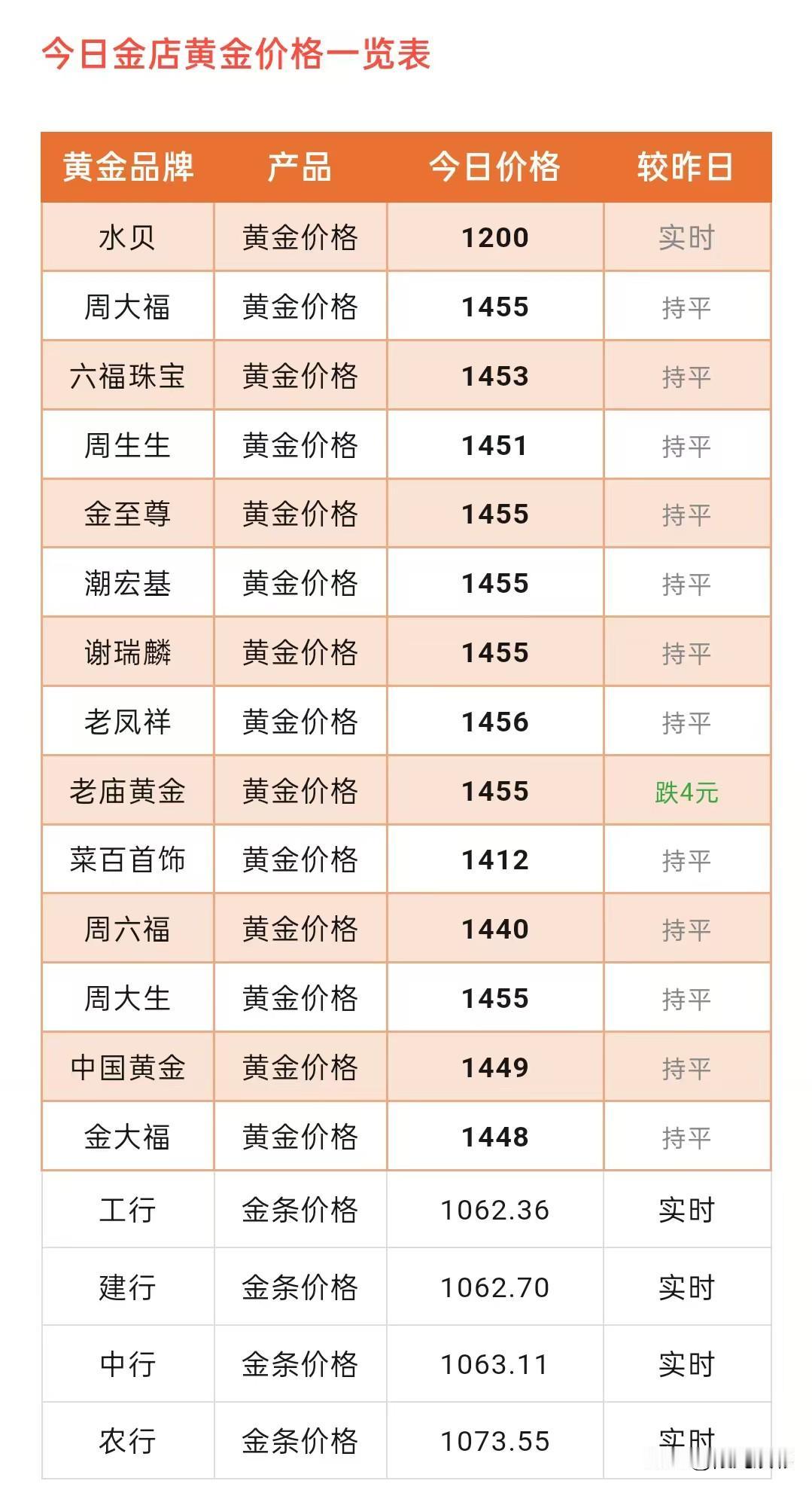 快看!今日金价,有某个品牌黄金门店金饰品价格下降了,以及了解一下购买黄金饰品的注意要点! 现在先来看看,今天各品牌黄金门店金饰品零售价卖到多少钱一克了? 周大福黄金价格1455元/克, 六福珠宝黄金价格1453元/克, 周生生黄金价格1451元/克, 老凤祥黄金价格1456元/克, 老庙黄金黄金价格1455元/克。 同比于昨天各品牌黄金门店金饰品报价,今天品牌老庙黄金价格同昨天下降了4元/克,其它各品牌黄金门店金饰品价格保持不变。 2026年1月20日黄金价格涨跌行情最新消息:由特朗普对欧洲八国加征关税,引发市场对美欧贸易局势的担忧,推动贵金属避险需求升温,今日金价和银价开盘后直线暴涨双双再创历史新高纪录,国际现货黄金及纽约期金突破4690美元关口,短线上涨超90美元,涨幅超2%,国内黄金价格站上1040元/克上方; 国际现货白银及纽约期银突破94美元关口,国内白银价格站上23元/克上方!铂金与钯金价格同步上涨。 截至今天上午黄金实时行情:伦敦现货黄金报每盎司4667美元,美黄金报每盎司4675美元,伦敦现货白银报每盎司92.8美元,美白银报每盎司92.9美元。国内实时金价1042元/克,白银实时价格22.2元/克,铂金实时价格518元/克。 有关中财期货20日表示,短期看,在地缘风险依然面临不确定性、美联储独立性再次面临不确定性,白银实物短缺矛盾依然存在的情形下,金银仍有上行空间,金银震荡偏强运行,后续关注地缘风险和美联储表态。 买金不踩坑: 1: 不必执着大品牌。足金首饰不一定非选大品牌,只要是足金小品牌或普通金店也可以,款式差异不大,还能省不少钱,毕竟大品牌金价和工费偏高。 2: 认准足金标识。买的时候别只看款式,一定要看钢印标有AU 999、G999和足金999的才是足金指标,不用追求4个9、5个9的纯度,回收时和3个九的价格一样。 3: 按克购买更划算。黄金要按克卖,别买一口价,单价高,后续货款只能换一口价款式,可能还要补钱,再优惠也不划算。 4: 慎选带附加饰品的款式。带玉石、珍珠、钻石的黄金款式尽量不买,这些附加饰品容易掉且不值钱,金价可能拉高,专坑不懂行的。 另外,耳钉选弯针不选直针,项链选M扣不选弹簧扣,手镯不选搭扣款和镂空开口款,这些非足金部分也会按足金计价。 5: 提前了解实时金价,上网查一下黄金走势,各品牌和银行的当日金价,做到心里有底。 最后,金店可以砍价,店员可能有内部优惠或员工折扣,你得主动提出要求,不然他们不会主动说,毕竟多买多赚。 记住这几点,买黄金首饰就不会吃亏。 最后分享个黄金首饰日常保养的小常识: 1:存放,黄金贵金属,要避免与其他珠宝首饰相互摩擦,碰撞,易变形,磕碰。 2:不能,避免接触化学物品,香水,化妆品,洗涤剂等,以免影响光泽。 3:清洁,使用温和的肥皂水或者专业的珠宝清洁剂轻轻擦拭。 4:轻拿,黄金软,硬金脆,轻拿轻放,防止拉扯,挤压,避免变形。 5:要取,适当的取下,尤其在体力运动或者洗澡时,防止甩掉,滑掉,最好将首饰取下。 所有信息,都只是提供参考价值! 购买黄金有风险,投资需谨慎,不要盲目跟风! 金价行情 金价回收行情 黄金售卖价格 黄金价 黄金金店价格 黄金一克720 足金金饰价格