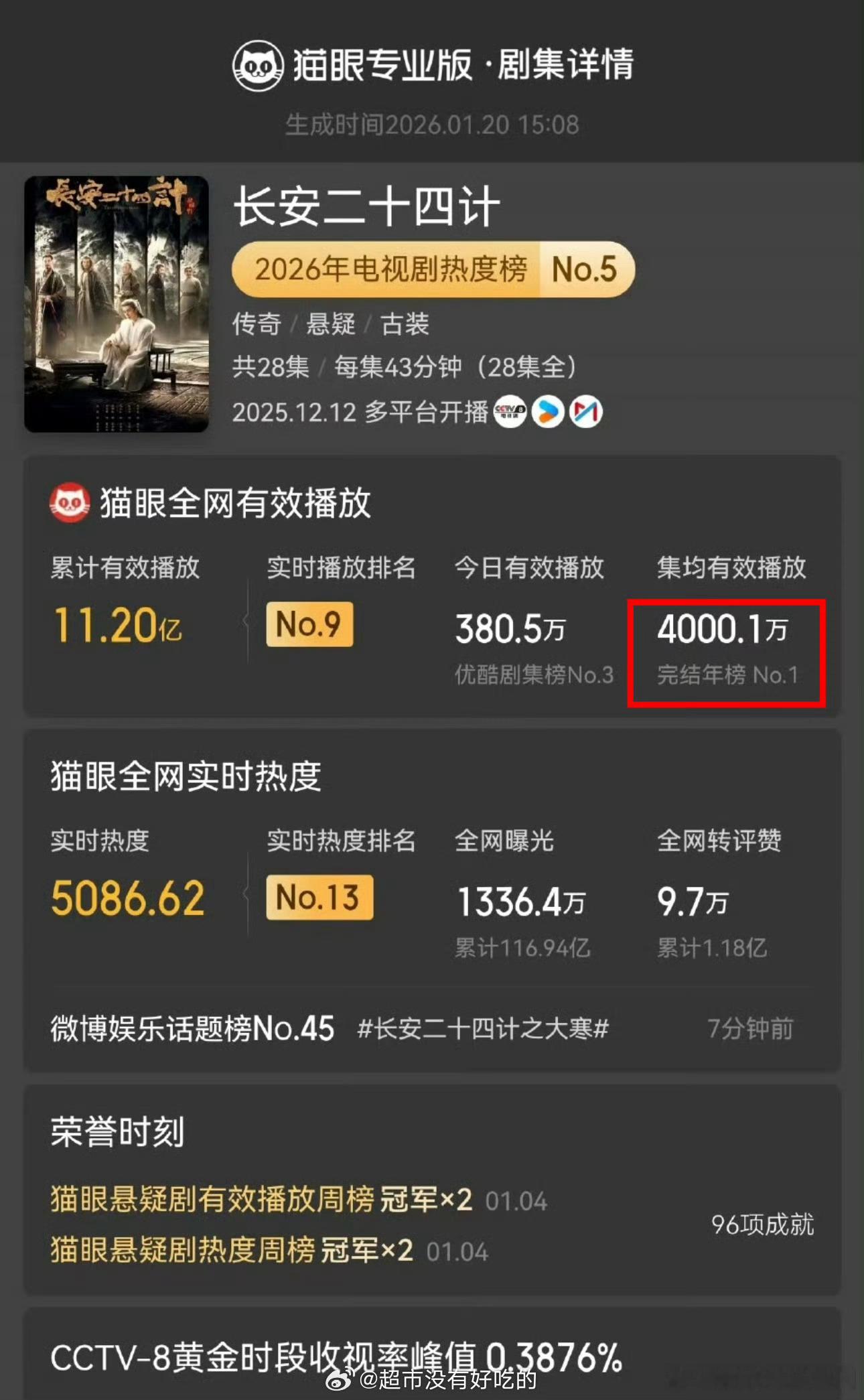 长安二十四计集均有效播放量破4000万恭喜《长安二十四计》集均有效播放量破4000万长安二十四计集均破4000万长安二十四计集均有效播放破4000万