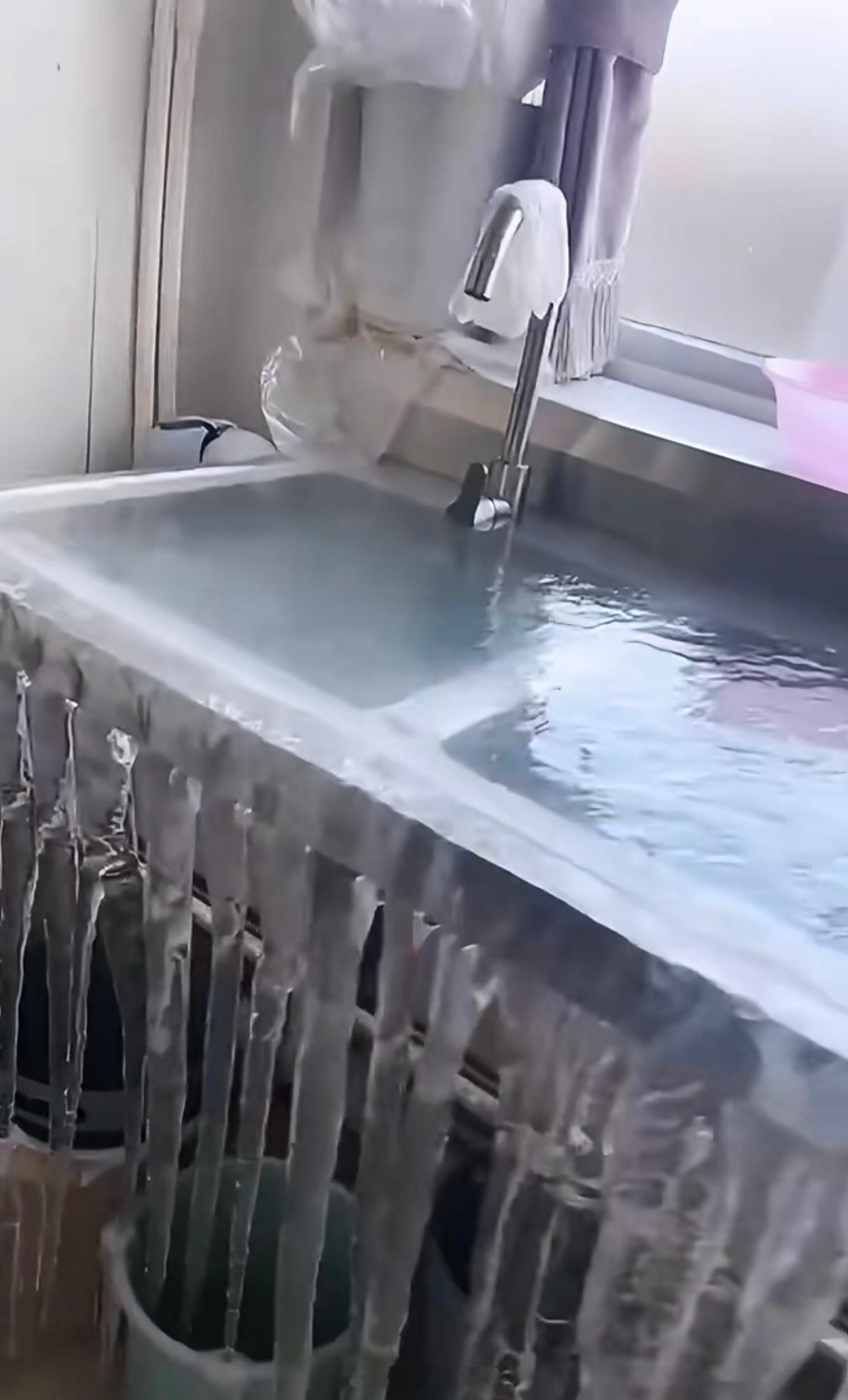 女子洗澡忘关水阀将小区变溜冰场南方的小伙伴很难相信这是真的,没有关水阀小区竟然能结冰看到网上这些实拍图,原来这都是真的,以前之前电影和AI里看到…