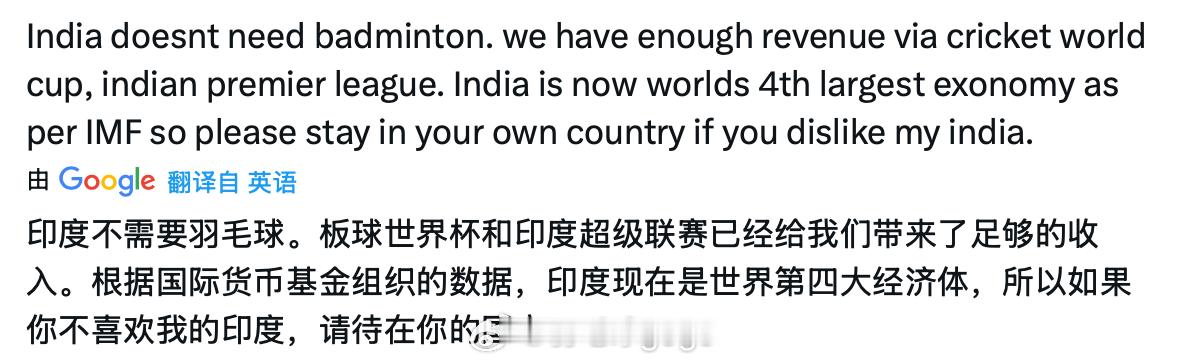 在🇩🇰米娅抨击印度不配举办世锦赛的底下的评论,有人赞同她,也有人认为印度不屑于举办羽毛球世锦赛我爱羽球