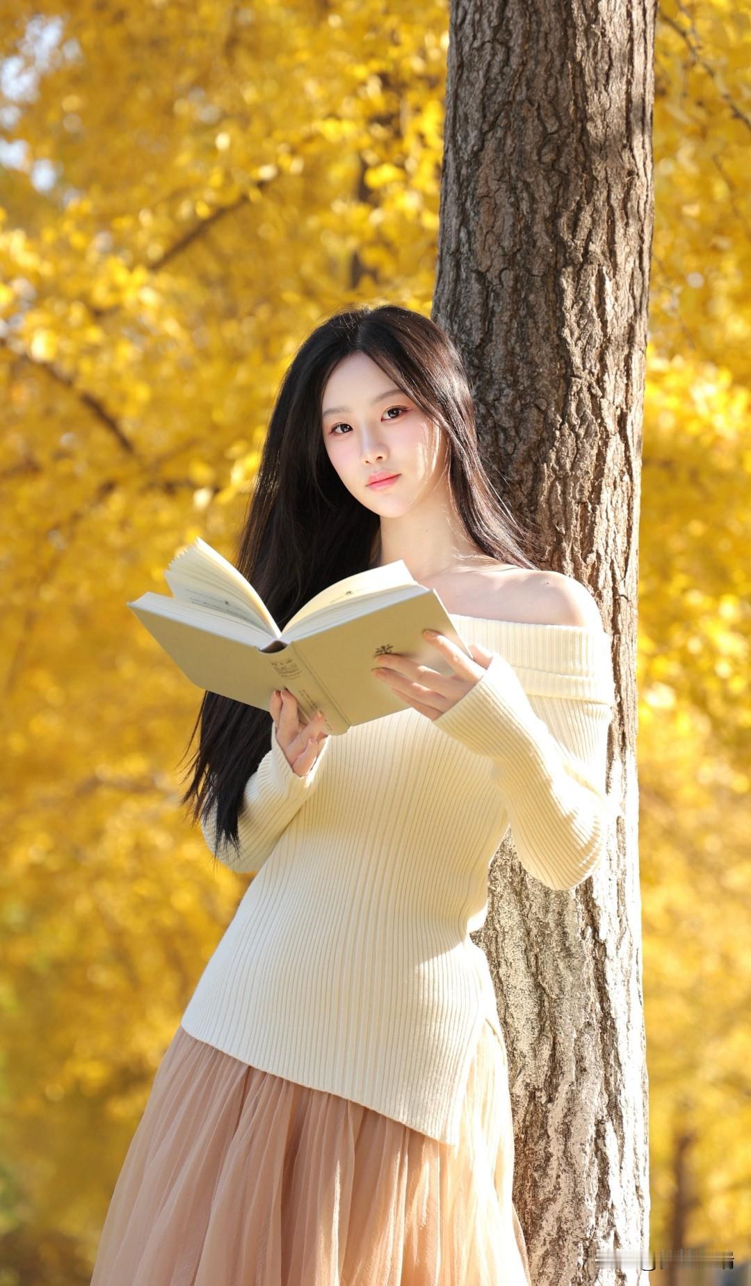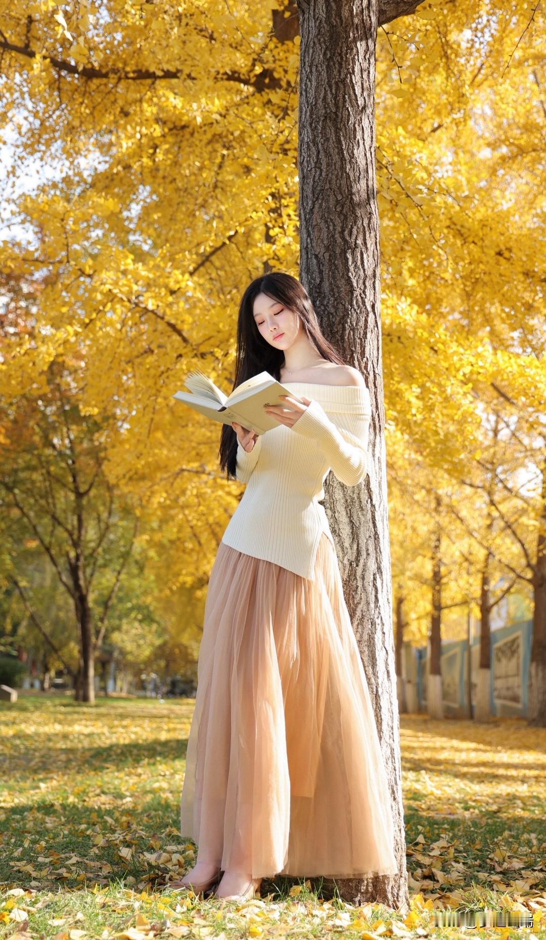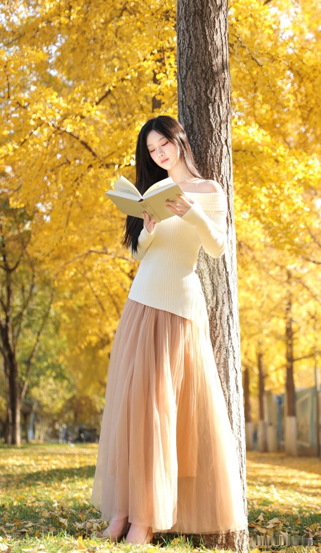 秋日暖阳下,少女轻倚树旁,沉浸书海,静享时光。