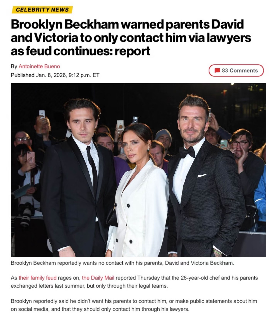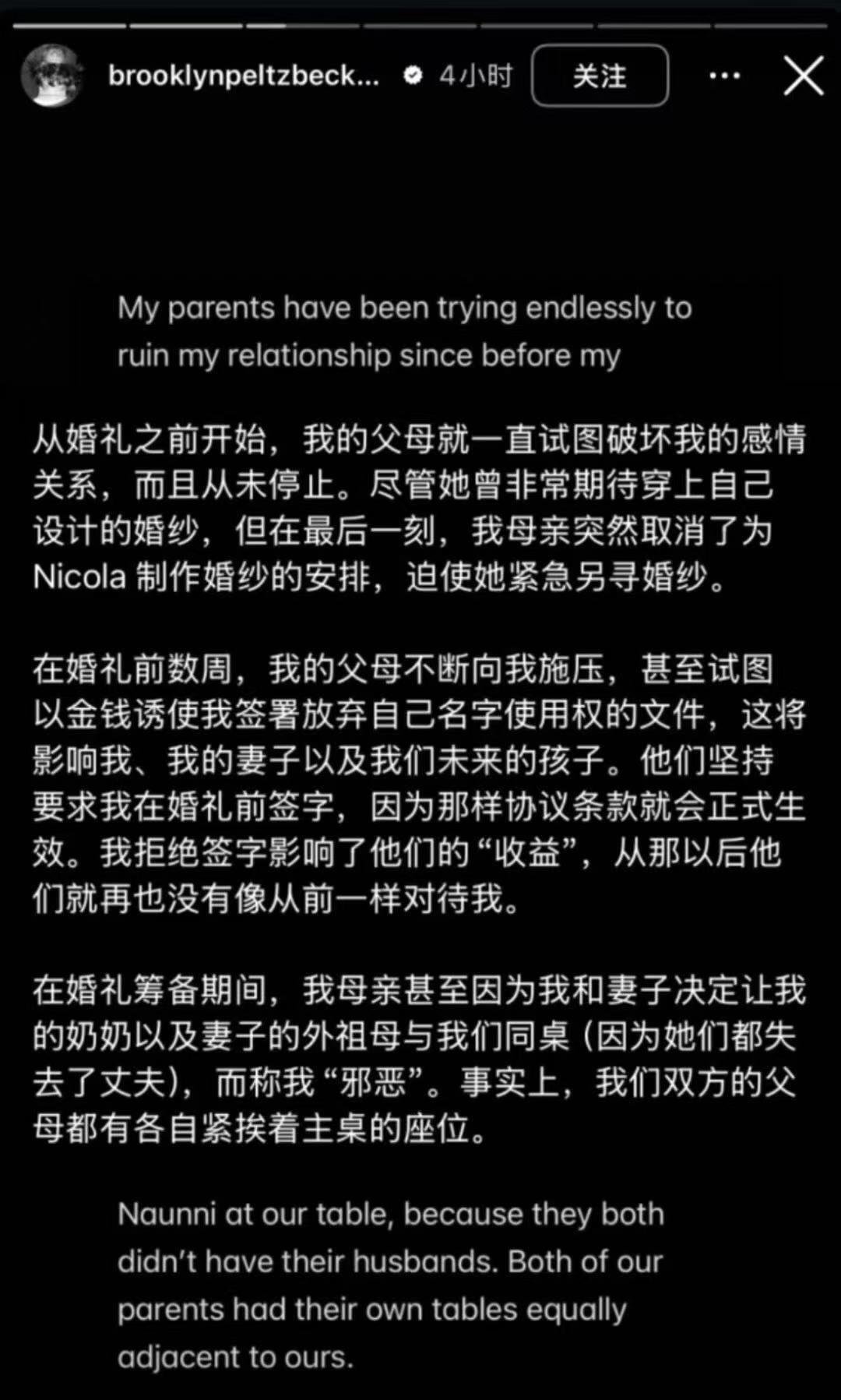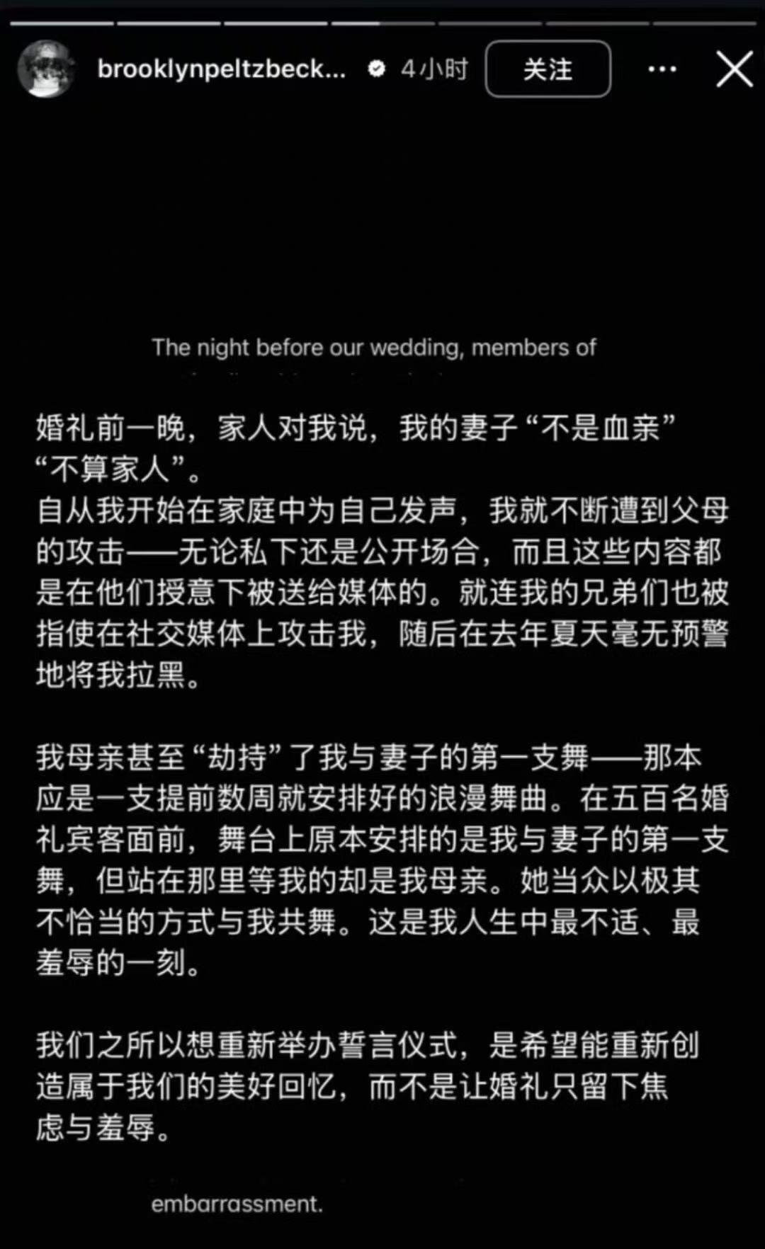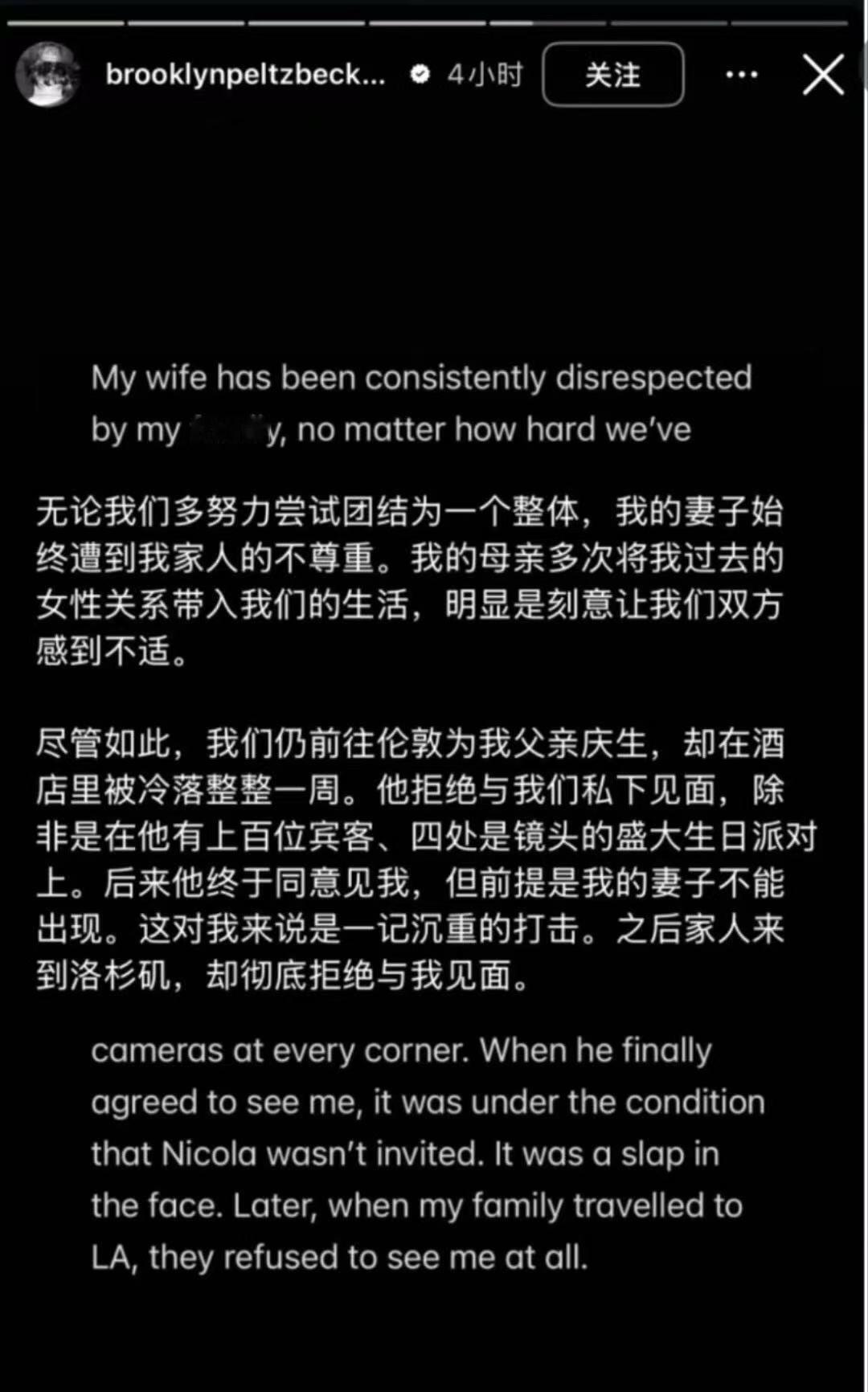 贝克汉姆大儿子布鲁克林发千字长文控诉父母对其长期精神控制,散布大量互联网谣言以维系“完美家庭”设定,让其长期处于极度焦虑状态中,还破坏他的婚姻贝克汉姆大儿子发长文与父母决裂