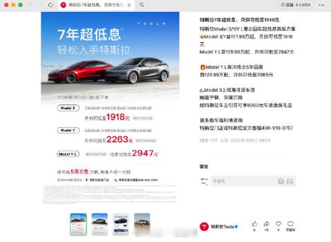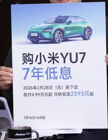 车圈要开启“贷贷相传”新模式? 特斯拉、小米、理想先后全都卷起了 “7年低息购车” ,但套路各有不同。简单总结:• 特斯拉: 开卷先锋,月供压得最低。Model 3月供1918元起(日供≈63元),号称比打车便宜,但首付偏高(7.99万起)。年费率分别为0%、 0.5%、0.7% 特斯拉 • 小米汽车: 紧跟节奏,主打“均衡”。买YU7首付4.99万,月供2593元起,政策到2月底。小米汽车 • 理想汽车: 全系首付3.25万起,且MEGA和i8可享前3年0息,后期月供约2857元。年费率为1.69%-2.5% 理想汽车 敲黑板: 7年贷款总利息并不低(理想部分车型年化利率约4.7%),但车企通过“超低月供”让你感觉“轻松开走”。本质上是用时间换销量,适合现金流紧张但收入稳定的用户。