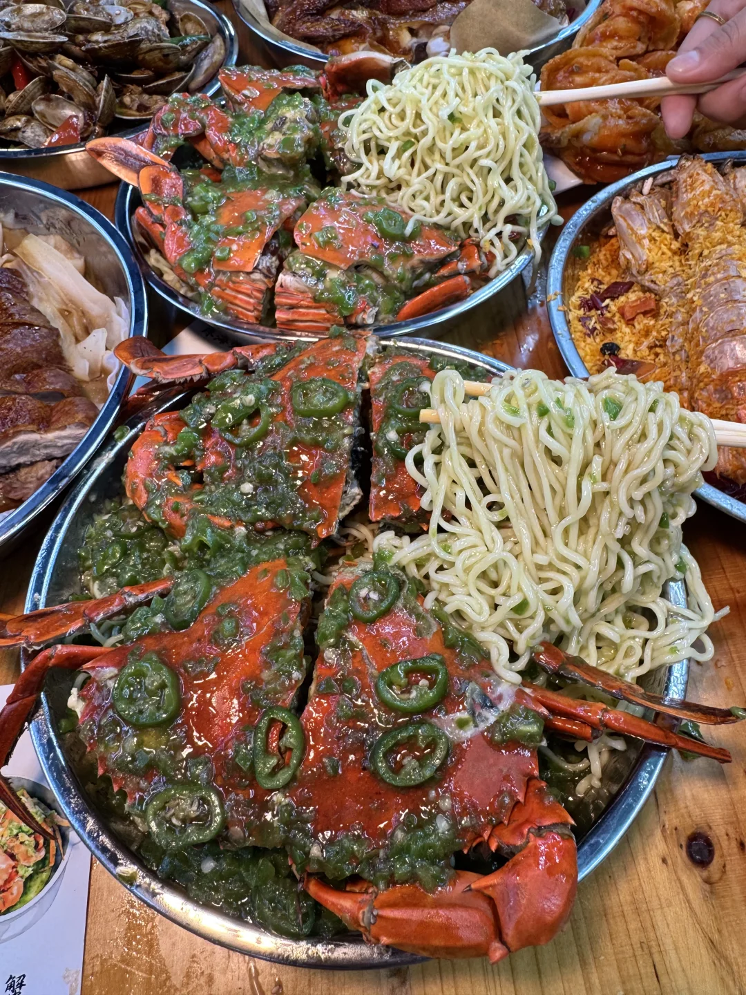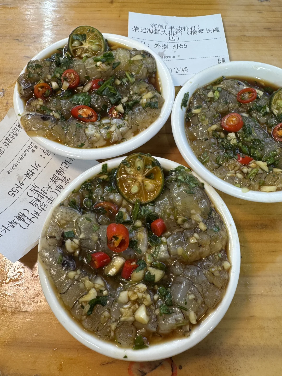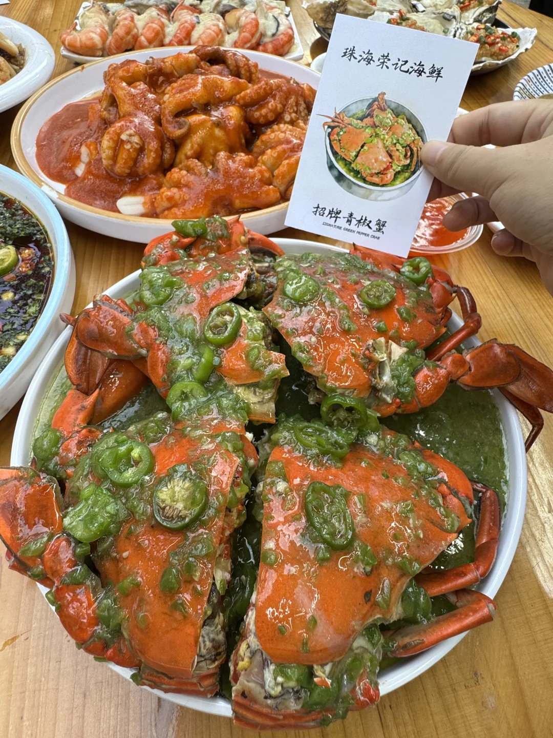 感谢珠海土著安利!就在长隆附近 开了7年的的海鲜大排档 从长隆打车过去也就10分钟 饭点都在排队的一家海鲜大排档! · 在一家店里吃到了好多以前没吃过的菜 到底是谁发明的口袋虾仁,太有创意了! 八珍捞饭里面有好多海鲜,浓稠的酱汁伴着饭吃太开胃了! 还有一些菜也不错 ✔️奶油焗罗氏虾虾✔️ 烧鹅陈村粉✔️玉米粑粑✔️鱿鱼锅贴✔️生腌皮皮虾✔️招牌青椒蟹 在📍荣记海鲜大排档(横琴深井村93号)