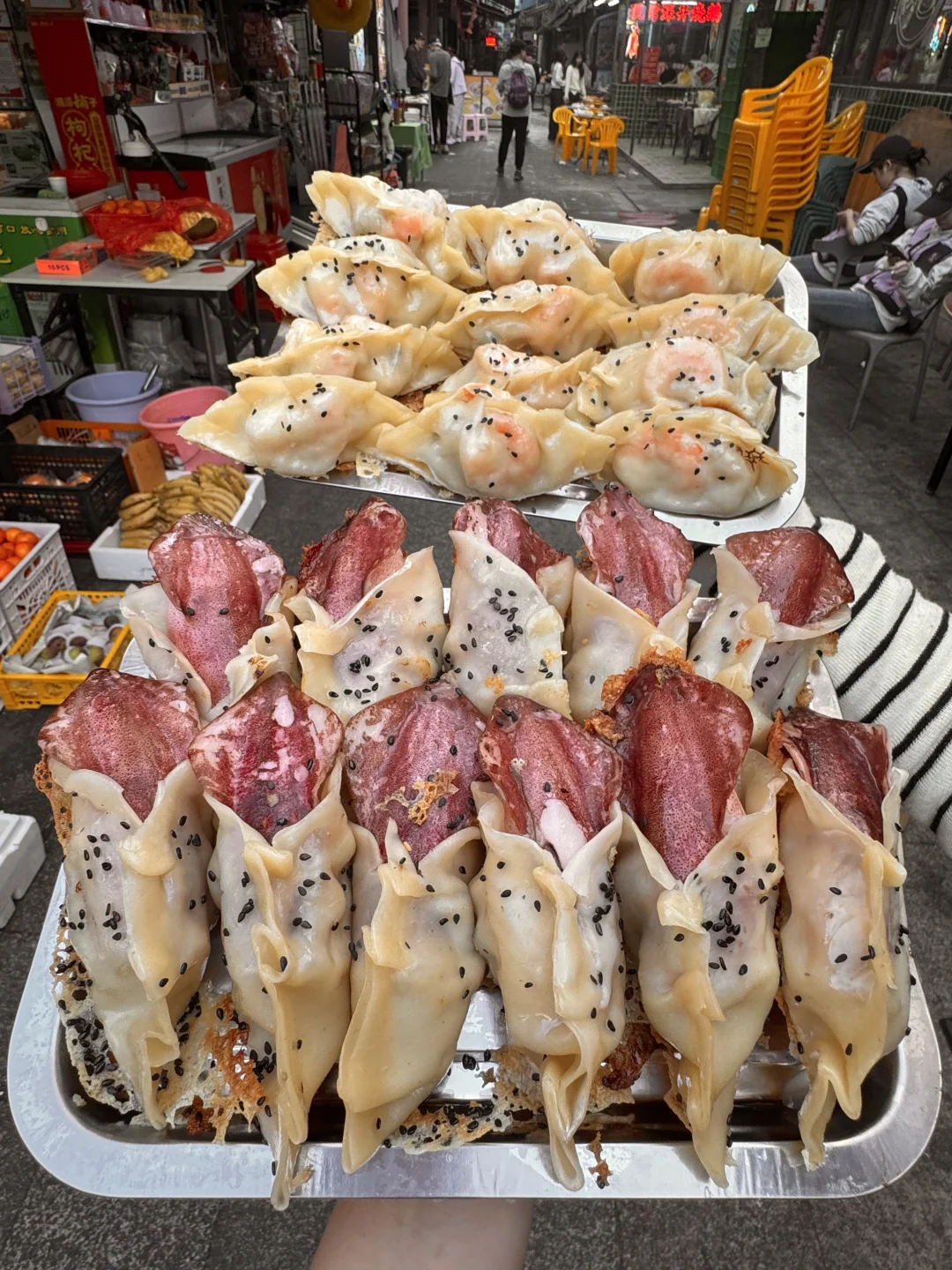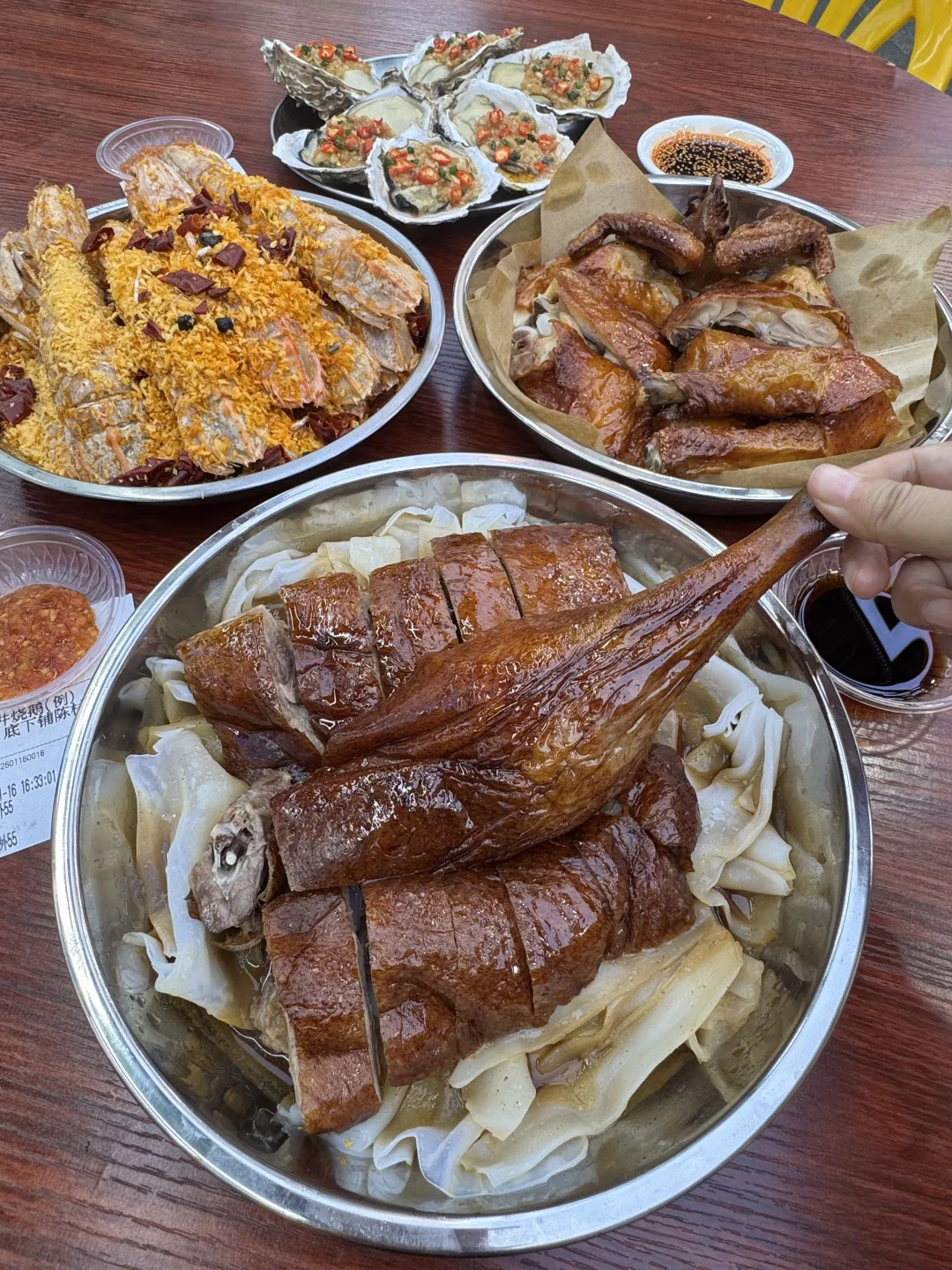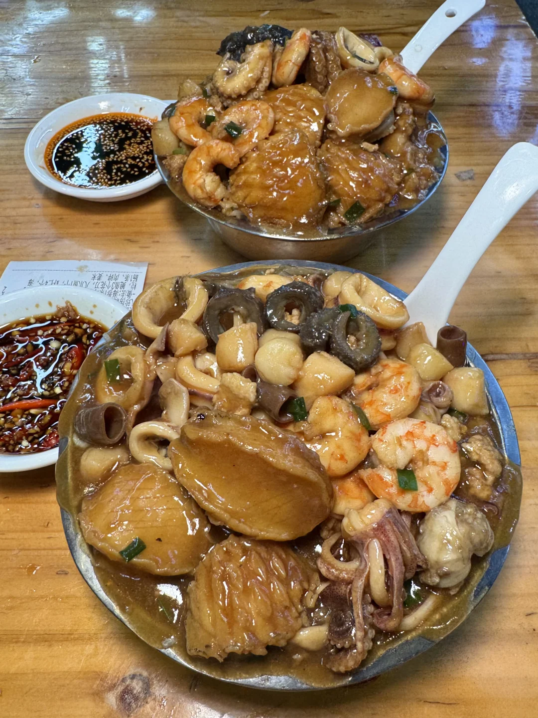 感谢珠海土著安利!就在长隆附近 开了7年的的海鲜大排档 从长隆打车过去也就10分钟 饭点都在排队的一家海鲜大排档! · 在一家店里吃到了好多以前没吃过的菜 到底是谁发明的口袋虾仁,太有创意了! 八珍捞饭里面有好多海鲜,浓稠的酱汁伴着饭吃太开胃了! 还有一些菜也不错 ✔️奶油焗罗氏虾虾✔️ 烧鹅陈村粉✔️玉米粑粑✔️鱿鱼锅贴✔️生腌皮皮虾✔️招牌青椒蟹 在📍荣记海鲜大排档(横琴深井村93号)
