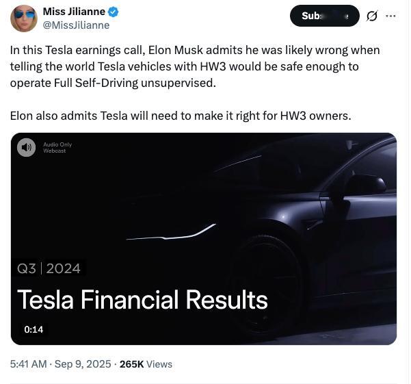 作为特斯拉车主,尤其是中国车主,我很难相信关于特斯拉对于FSD的任何承诺了。马斯克最近说AI4芯片的特斯拉,可以做到“无人监督的FSD”。但是呢,就在前年的特斯拉财报电话会上,马斯克还承认过他之前的说法是错误的——他曾经说,HW3 硬件的特斯拉车辆足够安全,可以运行“无人监督的全自动驾驶”功能。再结合国内大批AI4芯片车主仍然没有收到FSD的事实(我前段时间还听说HW3.0硬件的车主就压根不要指望了),我选择不相信任何期货和口嗨。