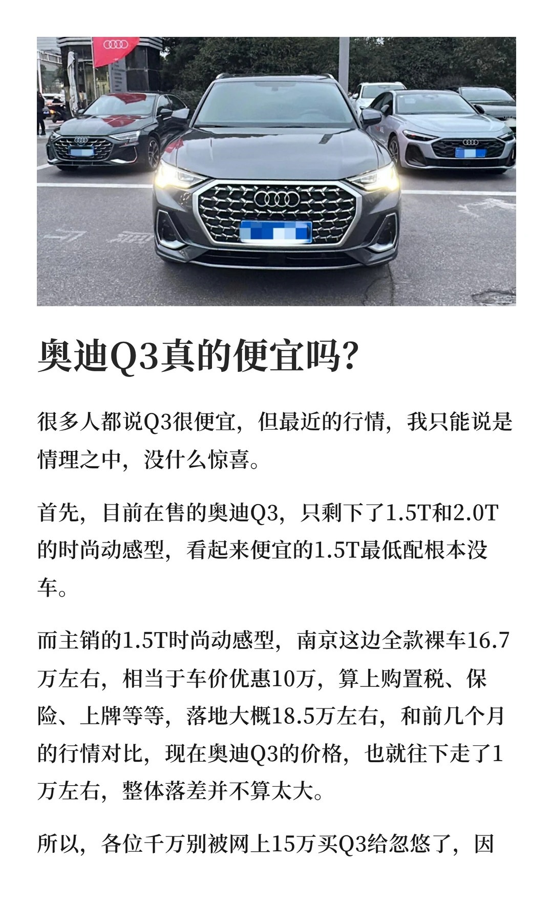 从25万跌到15万,奥迪Q3值得你抄底吗? 奥迪q3三刀侃车大v聊车