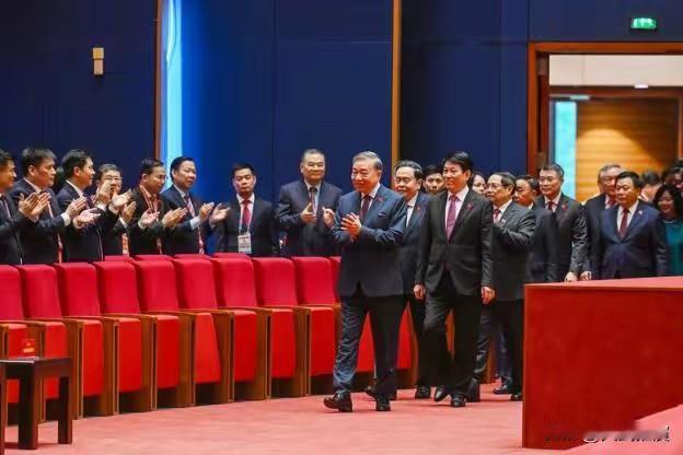 高光时刻!苏林、梁强居首,面带微笑,都身着深色西装迈步向前,展现出自信而亲和的姿态。 这一幕看着真提气!两人走在最前面,面带微笑。 身上穿着深色西装,步子迈得稳稳当当。 周围的人都抬起手鼓掌,神情专注,满是敬意。 其实苏林这几天就要告别中期一把手的标签了。 他的上一任是在任上病逝的,所以他的任期不是完整的。 站在苏林旁边的梁强,是中期二把手,任期同样不完整。 现在班子里,只有范明政的任期是满打满算的。 他的资历也是最老的,根基稳当。 有网友说,越南现在的排位情况,和我国刚建国时很像。 那时候的班子排序清晰,如今越南这边苏林、梁强、范明政的格局也很明确。 笔者认为,希望苏林同志好好干,带领着往前走。 踏实做事,稳步推进,肯定能闯出一番新局面! 对此,你怎么看呢?