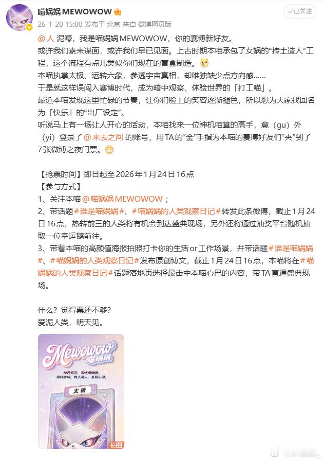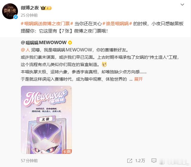 十二生肖没有猫的遗憾被弥补了 谁是喵娲娲全网蹲的暖心喵娲娲上线!补全十二生肖缺猫的遗憾,上古大佬秒变快乐派送员,心疼打工人还狂送微博之夜门票,速冲关注!