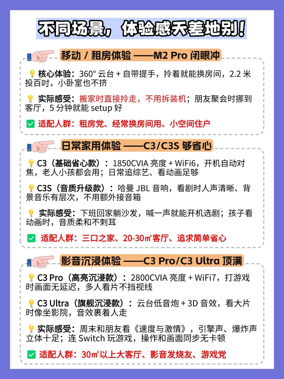 ✅ 租房 / 小户型→M2 Pro(带提手 + 360° 云台)
