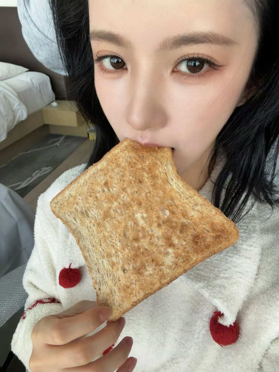 我同意刘些宁小猫卖萌!吃面包好可爱啊!可爱的宁~