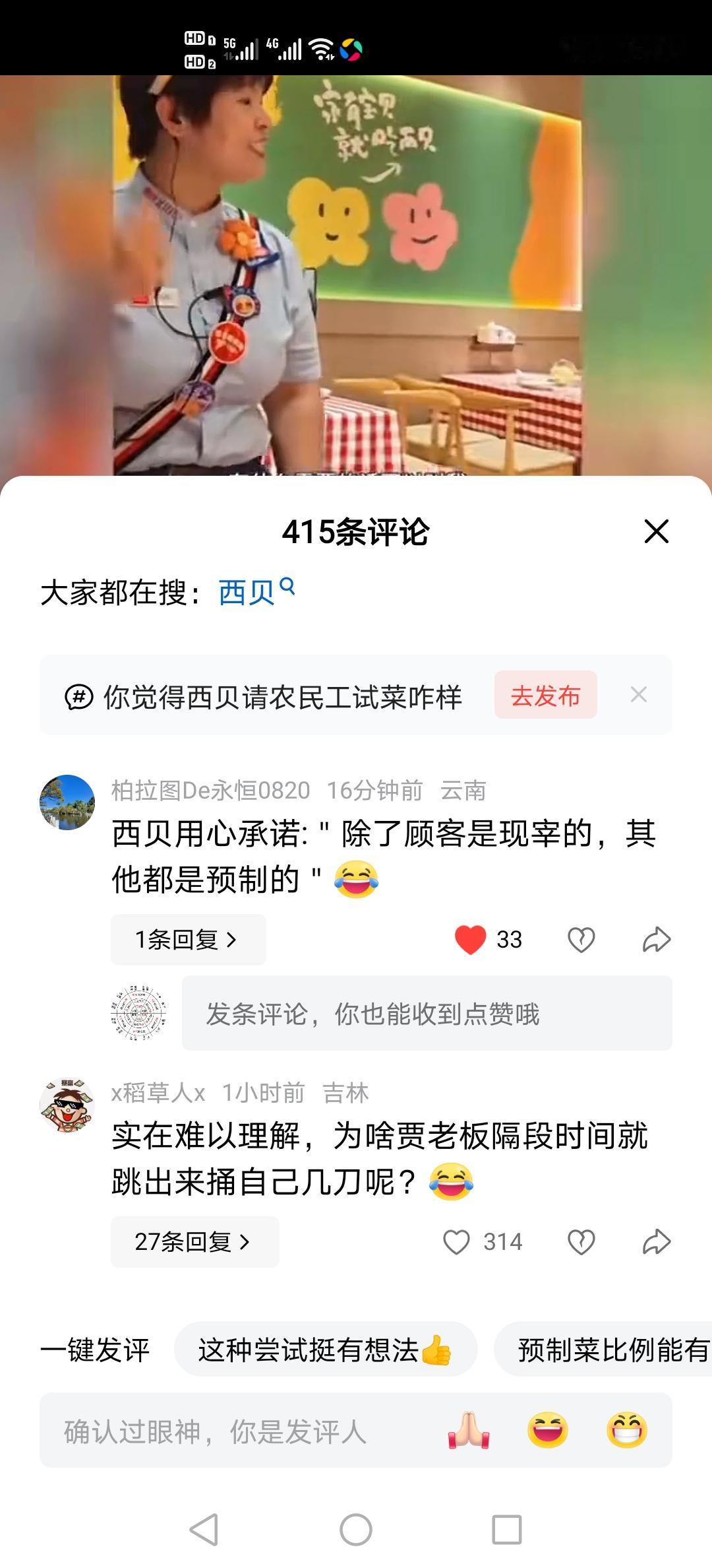 西贝的公关也是没谁了,顾客都是现宰的,菜品都是预制的,笑喷了