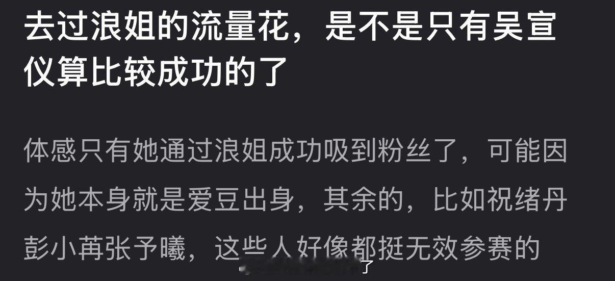 去过浪姐的流量花,是不是只有吴宣仪算比较成功的了?